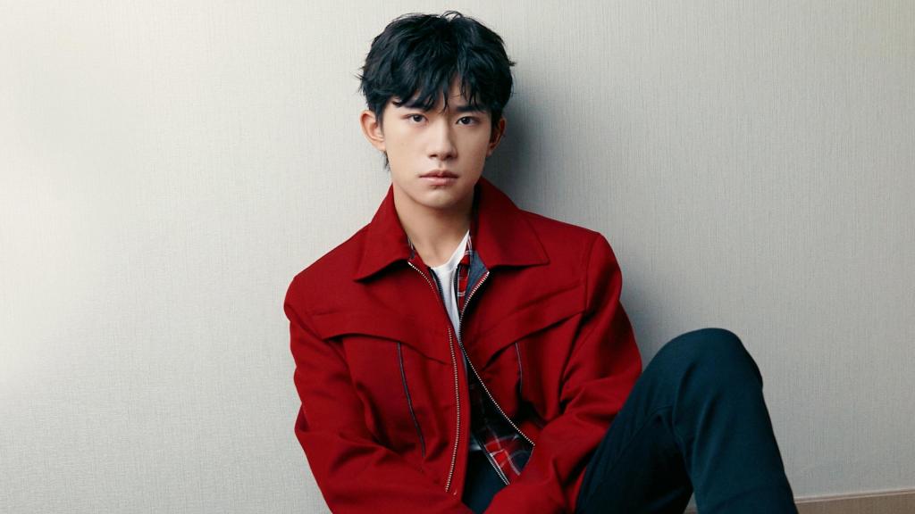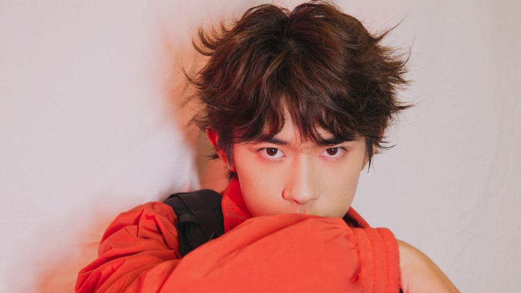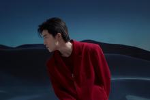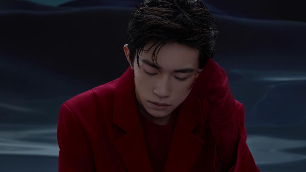易烊千玺红色卫衣搭黑马甲时尚写真