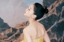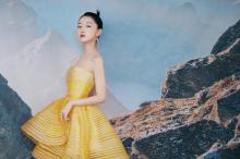 林允性感藕粉色亮钻纱裙诱人写真