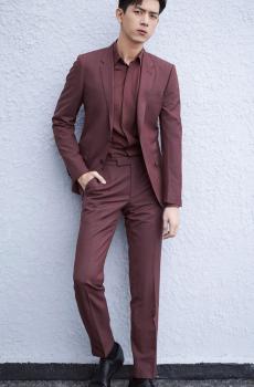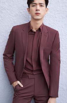 图集介绍:李现身穿一身酒红色西装绅士贵气,展露笑颜又不失雅痞风范。