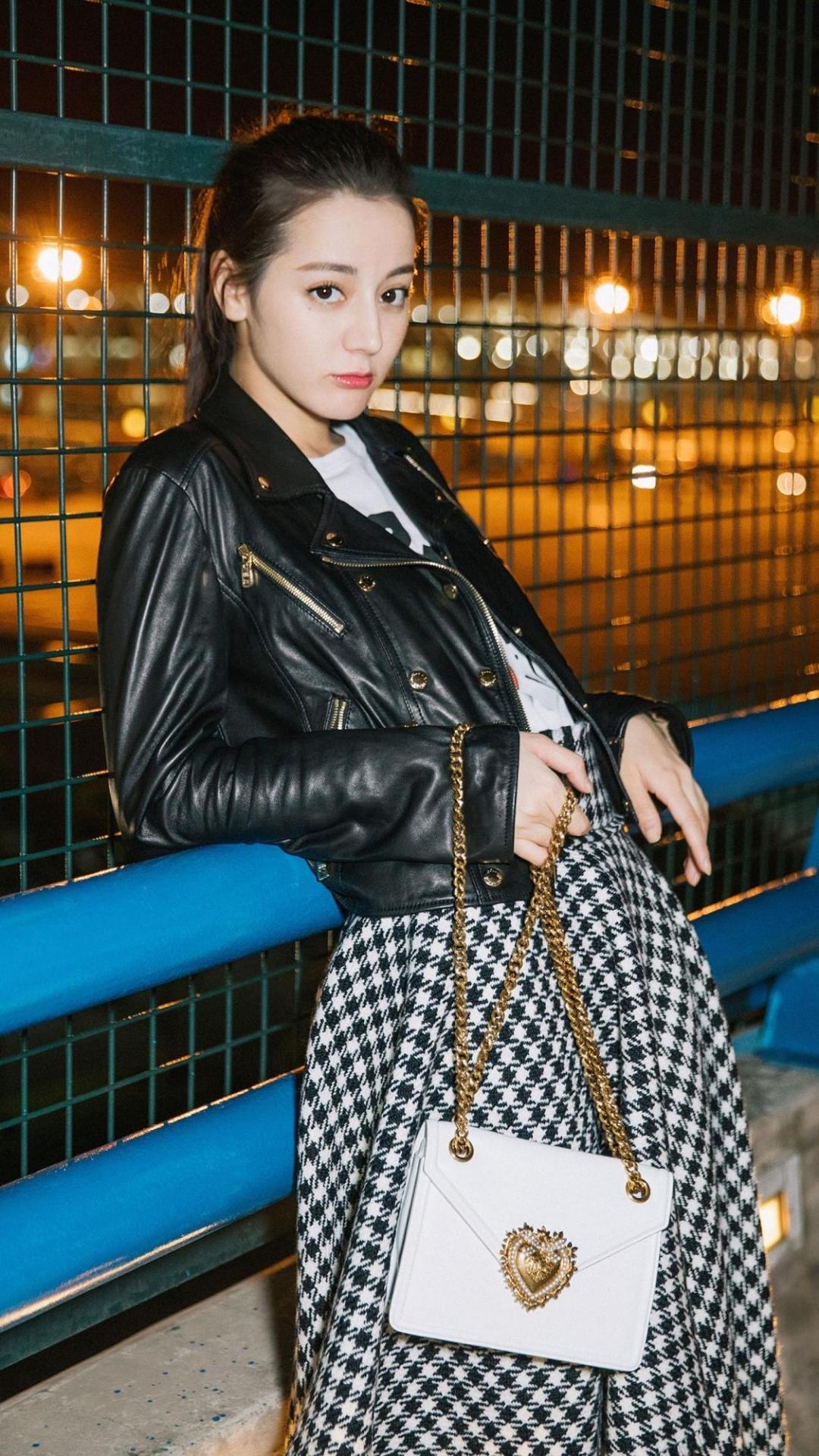 夜晚下美丽动人的迪丽热巴户外迷人写真