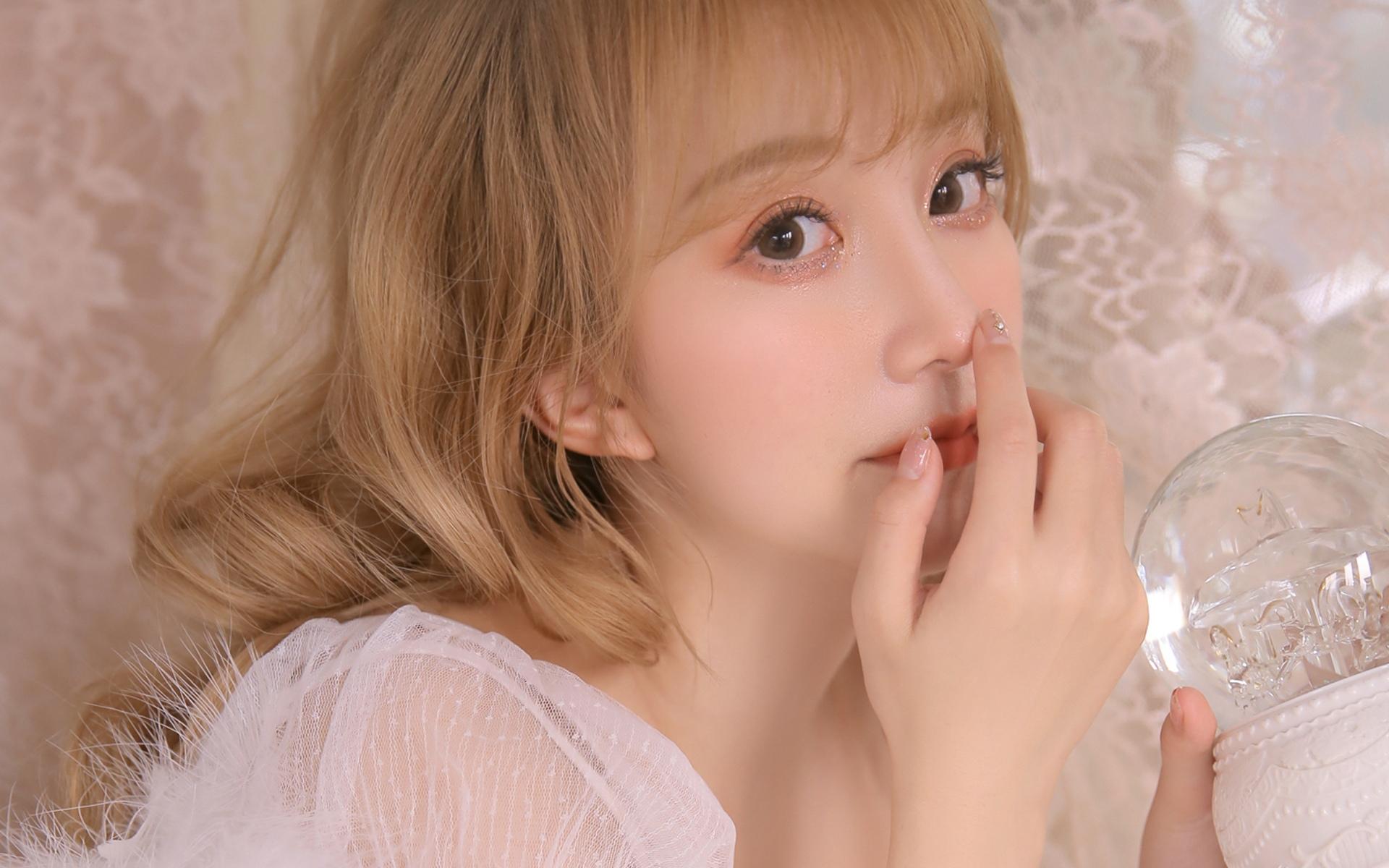 黄色卷发美女甜美可爱写真