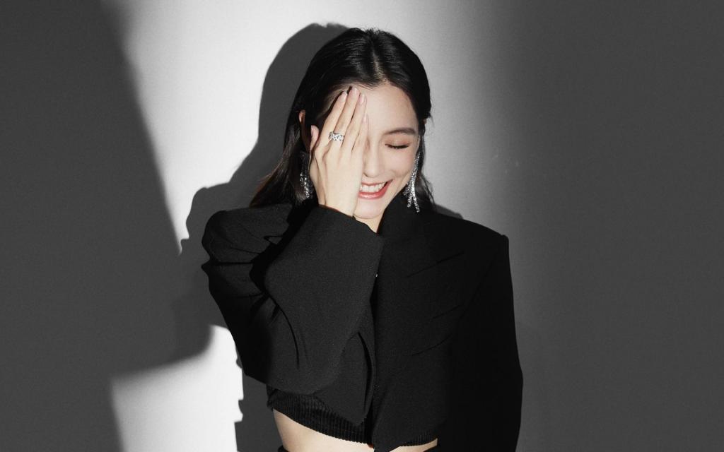 Angelababy黑色系礼服裙写真