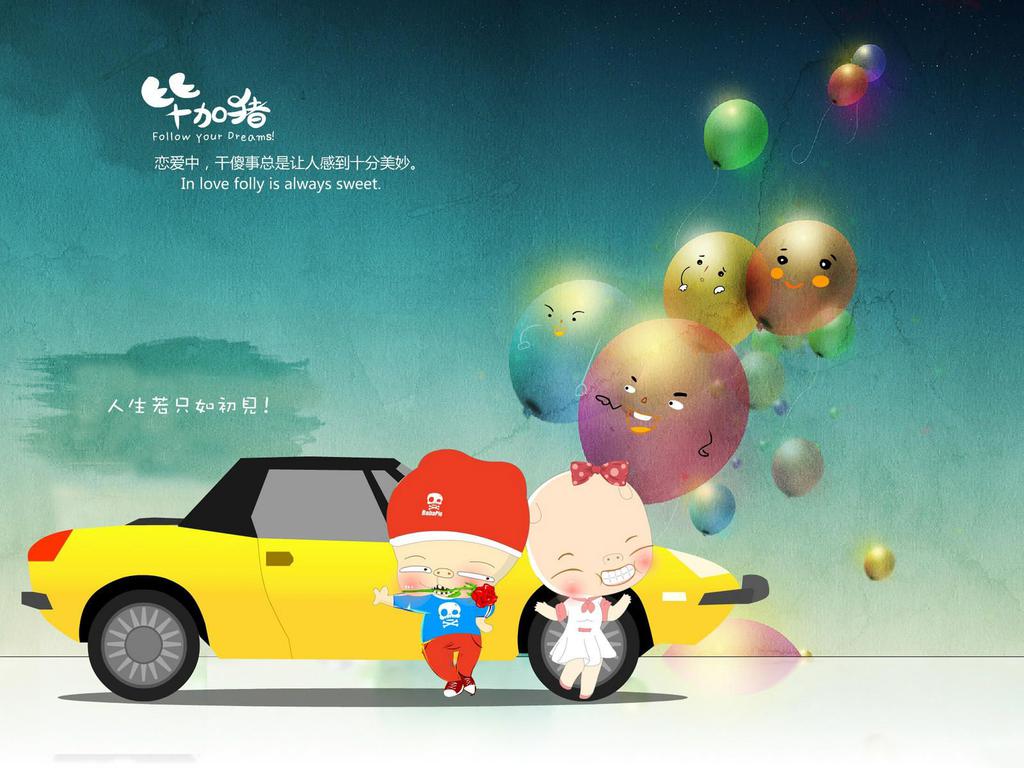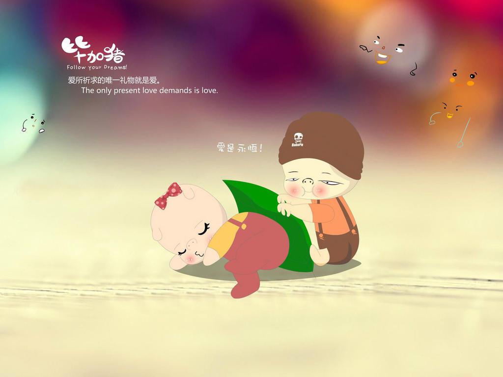 图集介绍:毕加猪的爱情故事卡通文字桌面壁纸,造型可爱、个性滑稽、调皮捣蛋、表情千变万化的卡通小精灵;这相貌笨笨大智若愚的小猪生活点滴都绘制成了动画片。