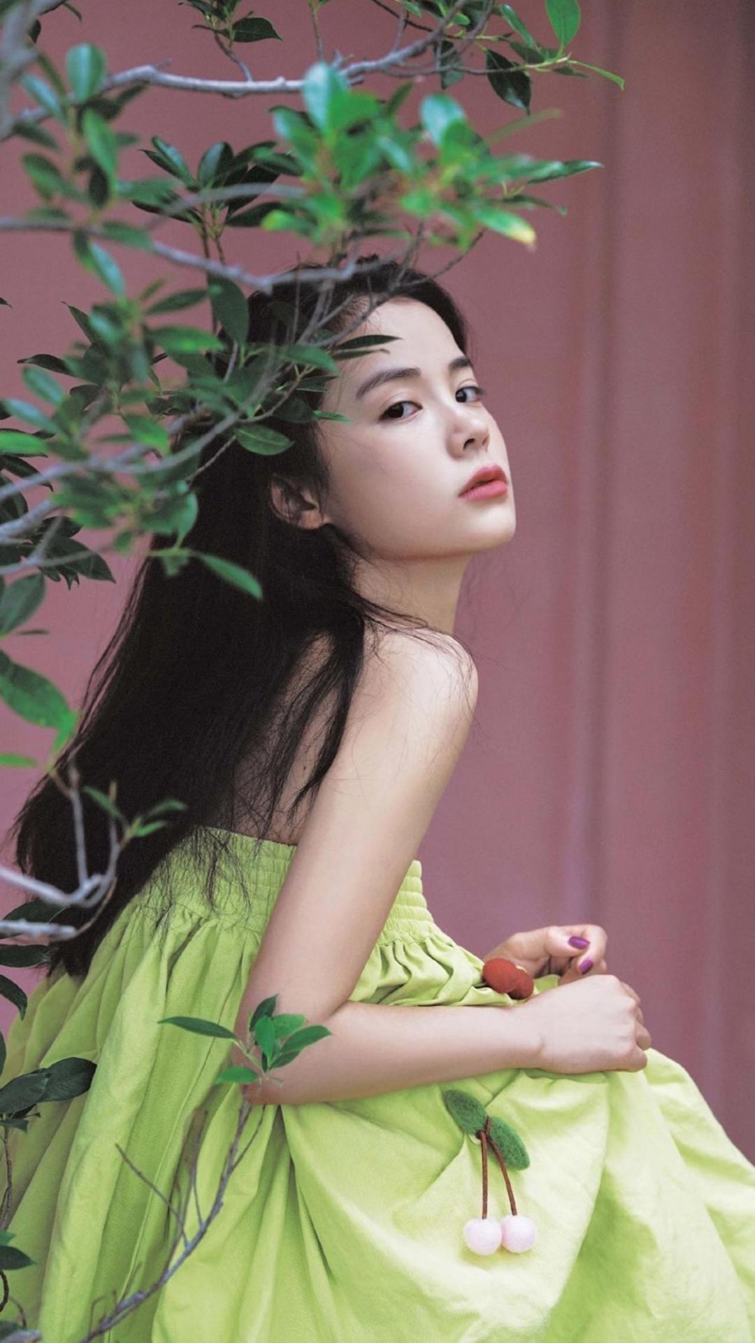 宋茜珊瑚红浪花裙性感诱惑写真