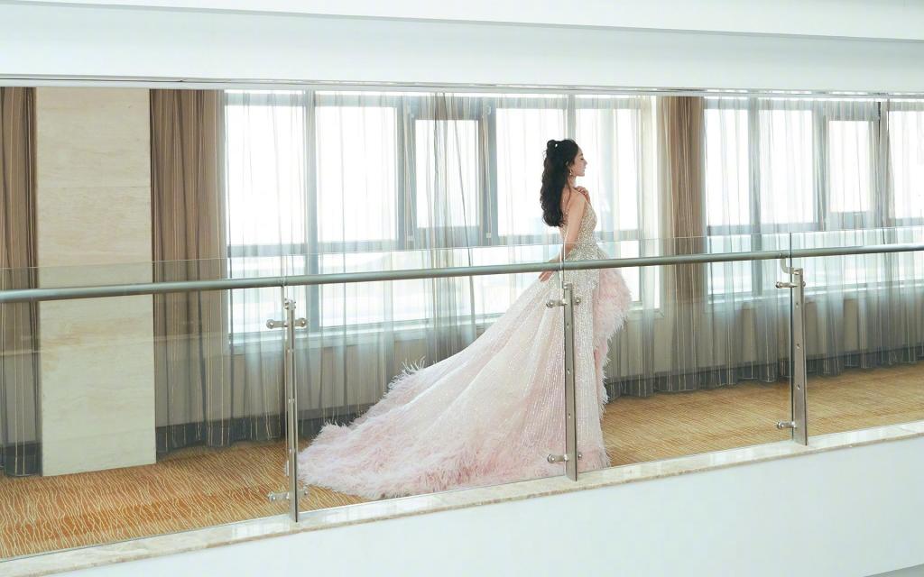 微博之夜盛典杨幂裸色闪钻长裙写真