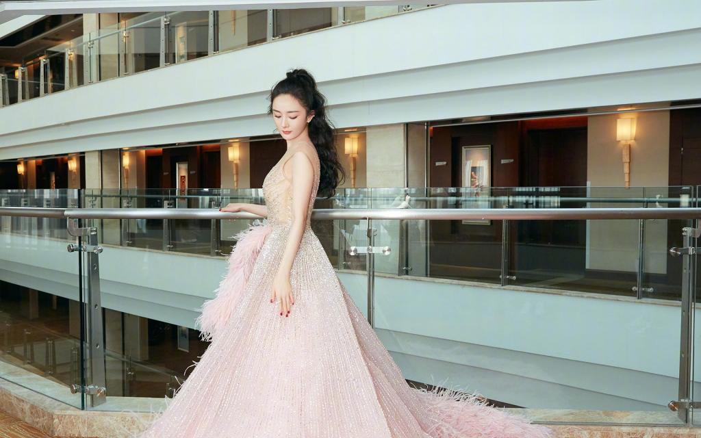 气质美女杨幂优雅礼服搭配鱼尾辫