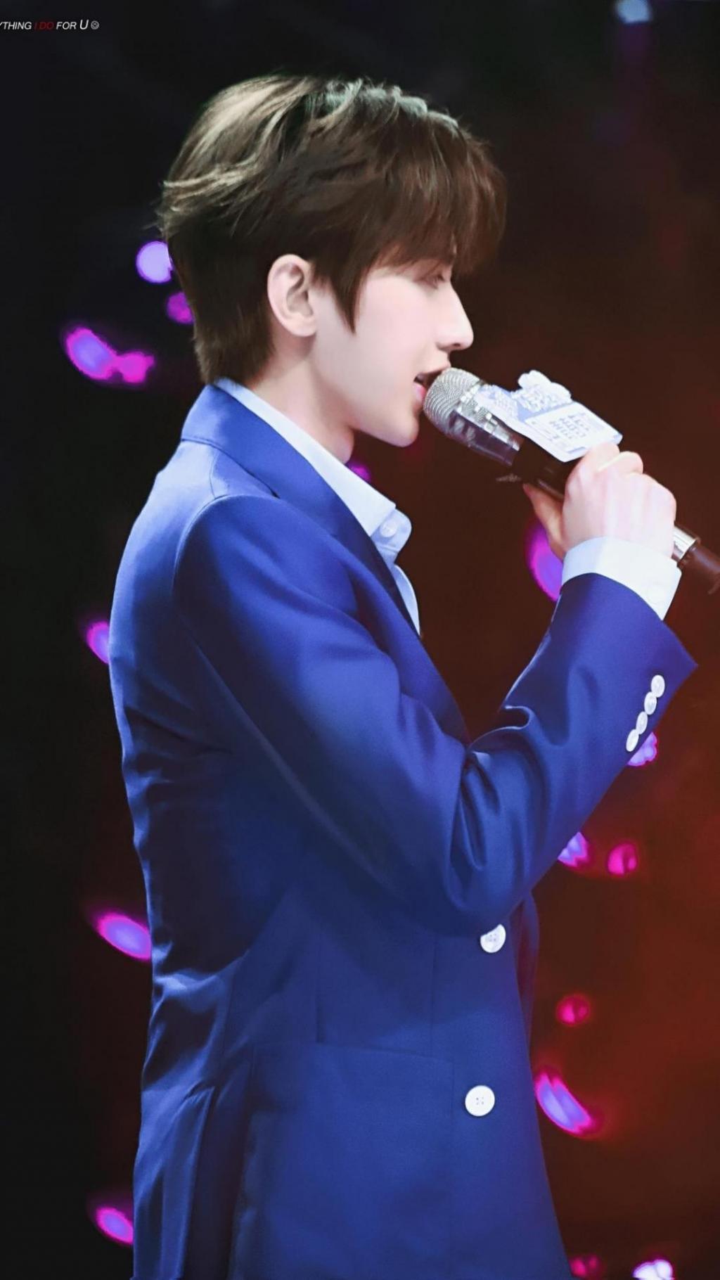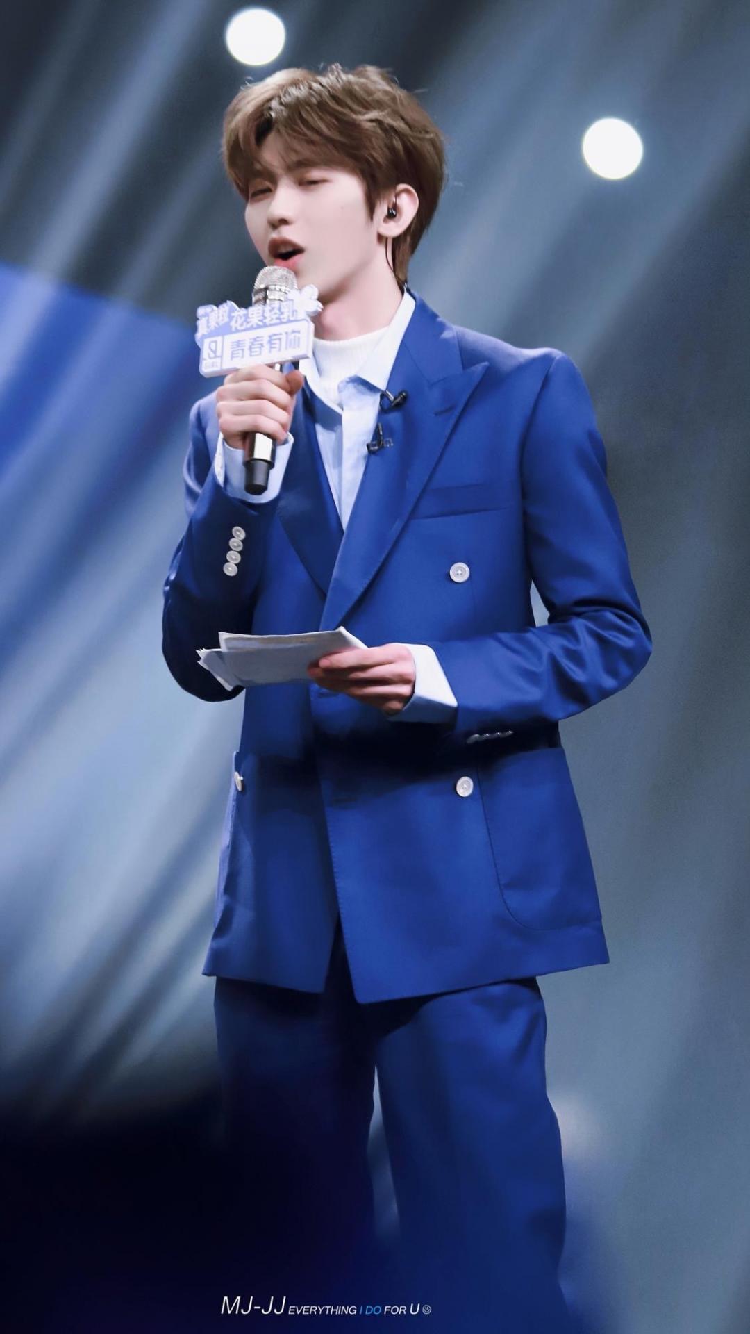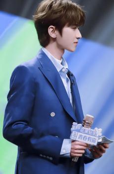 蔡徐坤深蓝色垫肩西装造型