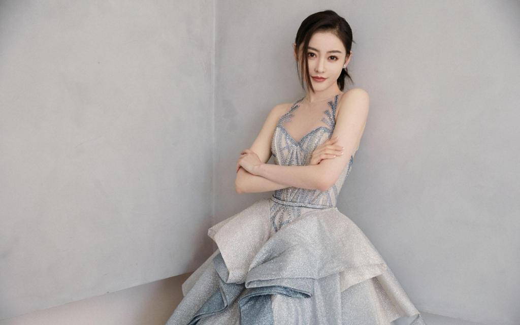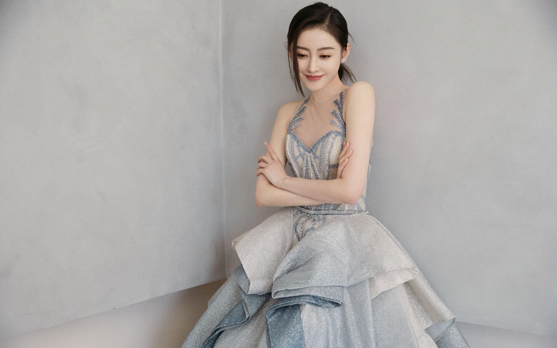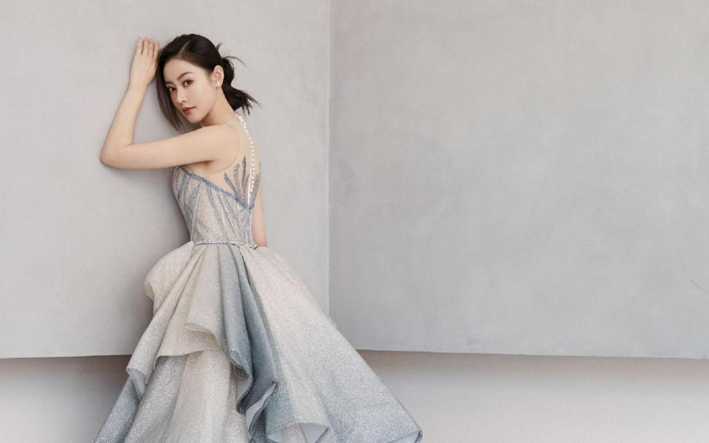 张天爱香槟色裙子
