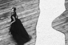 成熟美女性感黑色花裙户外诱人写真