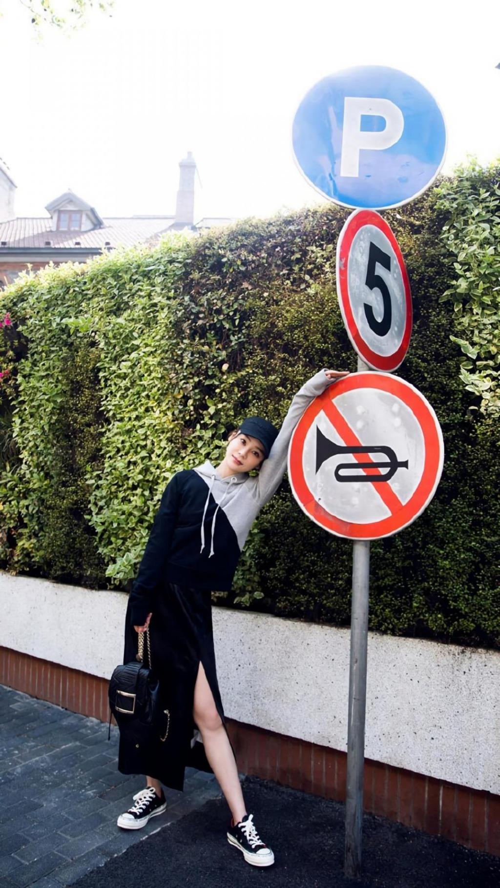 袁姗姗性感开衩裙时尚户外生活照