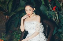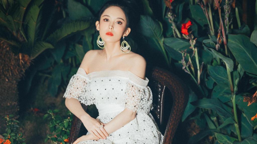 古力娜扎蕾丝裙性感一字肩诱人写真
