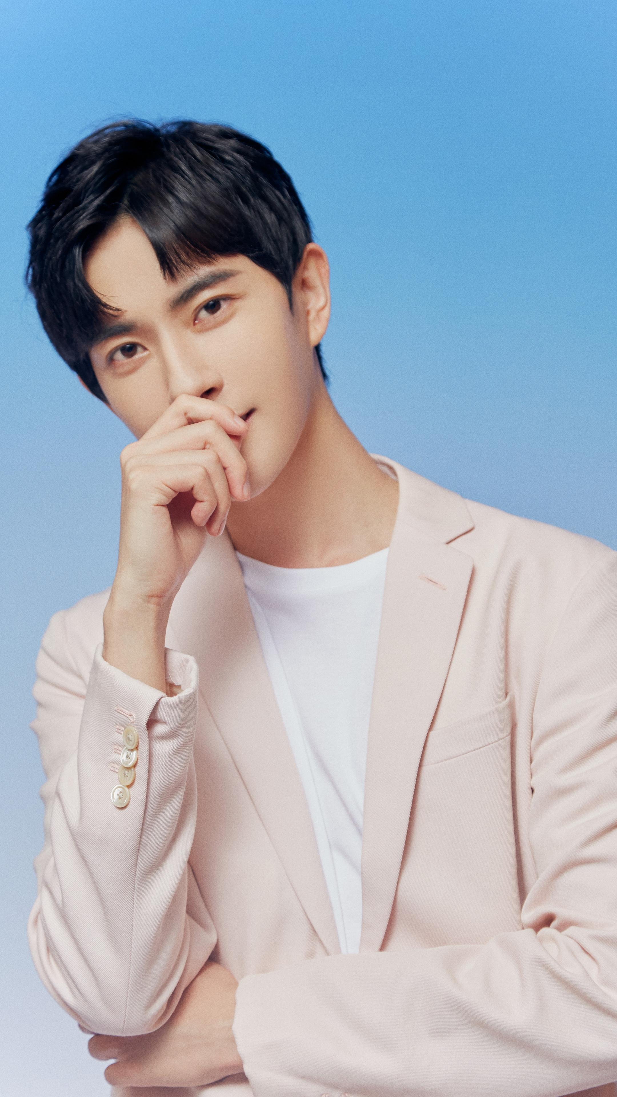 图集介绍:于朦胧粉色西装清新写真手机壁纸:于朦胧身着粉色西装简约大方,配色清新。