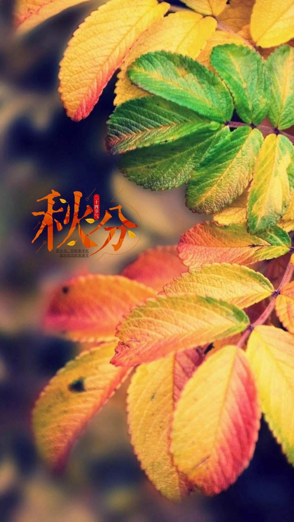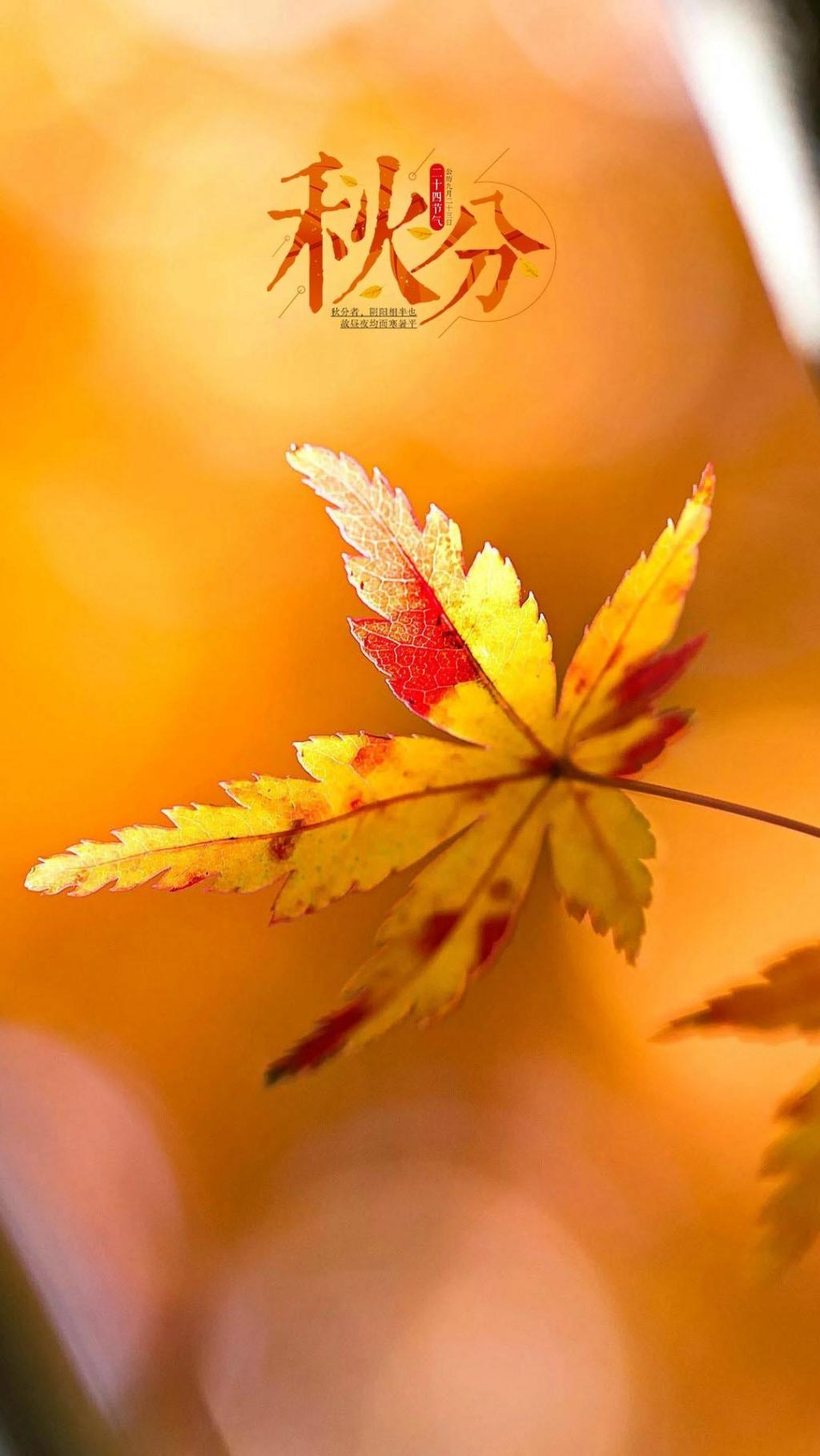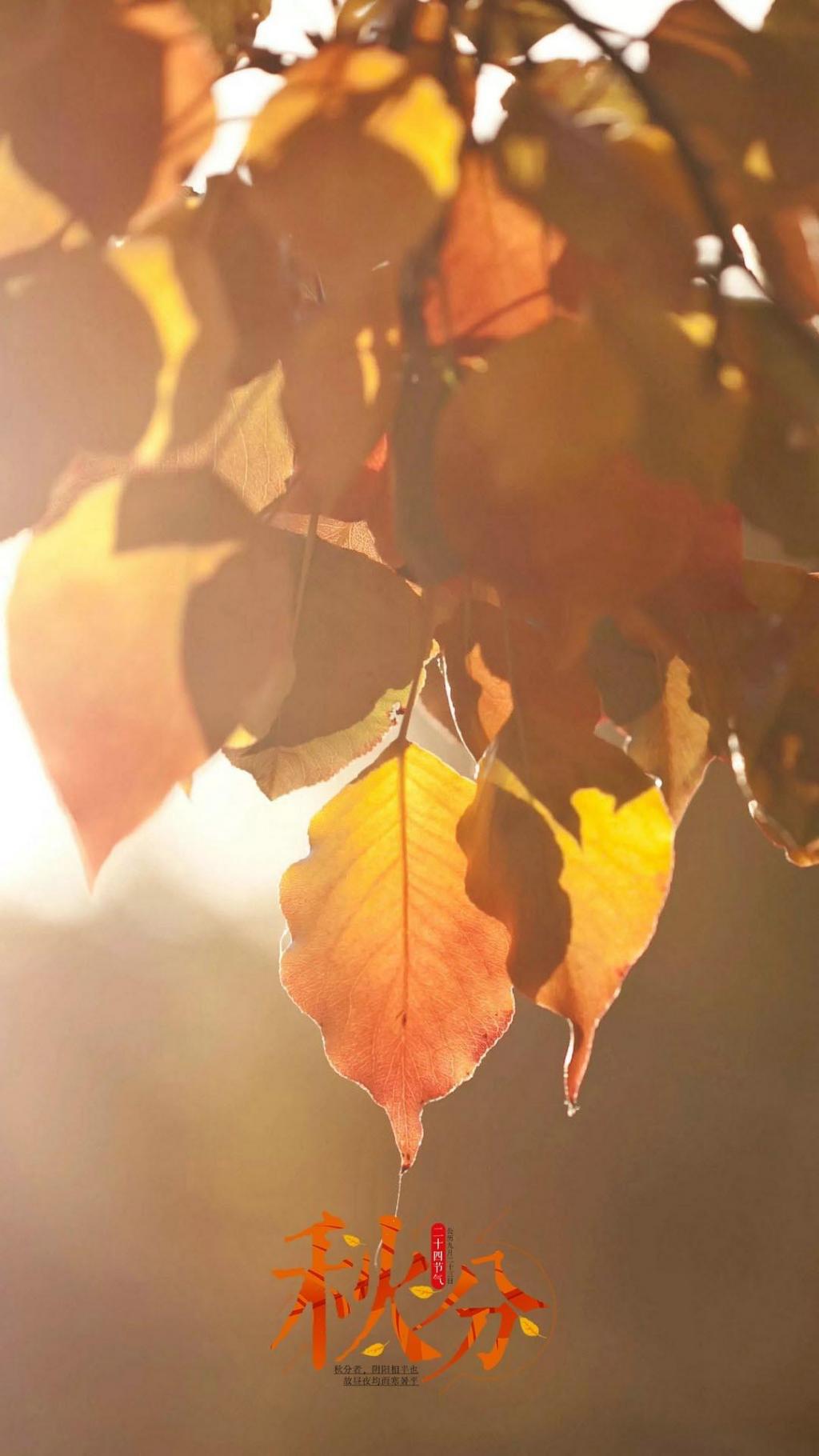 图集介绍:二十四节气秋分唯美秋叶手机壁纸:秋风将思念传递,秋雨将牵挂浇灌,秋花将情谊绽放,秋果将喜悦缤纷,秋叶将快乐纷扰,秋分将祝福传递,秋分,愿你欢乐不断,幸福围绕!