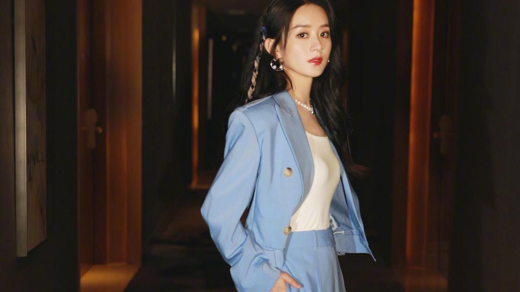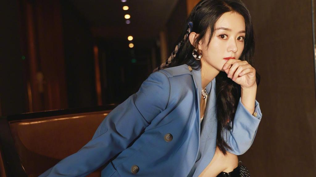 图集介绍:赵丽颖时尚魅力迷人写真电脑壁纸。赵丽颖亮相品牌直播活动,穿着蓝色系套装,别致的粉蓝编发,简洁又利落,今日份甜酷女孩。