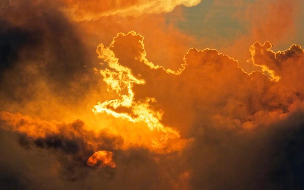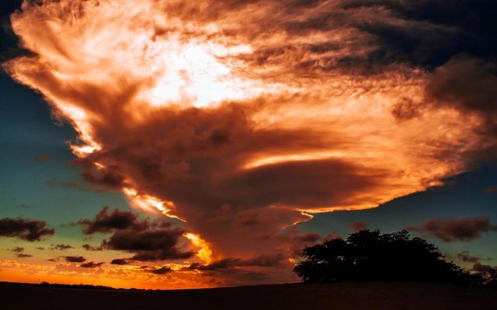 图集介绍:绝美夕阳火烧云迷人风光电脑壁纸:傍晚,夕阳欲落。眺望那红彤彤的大火球只露着半边笑脸,天上飘着一大片美丽的火烧云,给它们换上了更加美丽动人的衣裳。