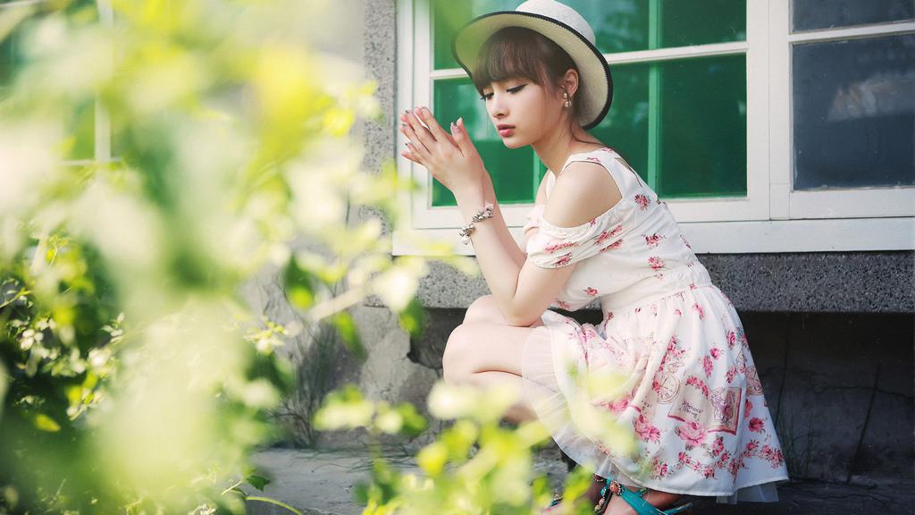 小清新文艺系美女户外写真壁纸