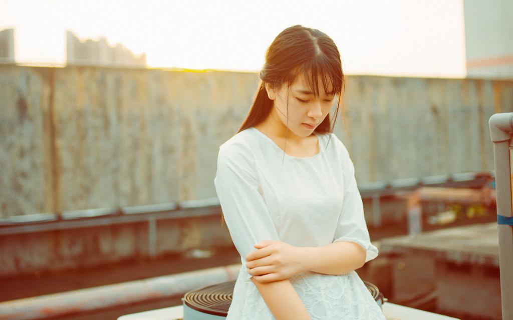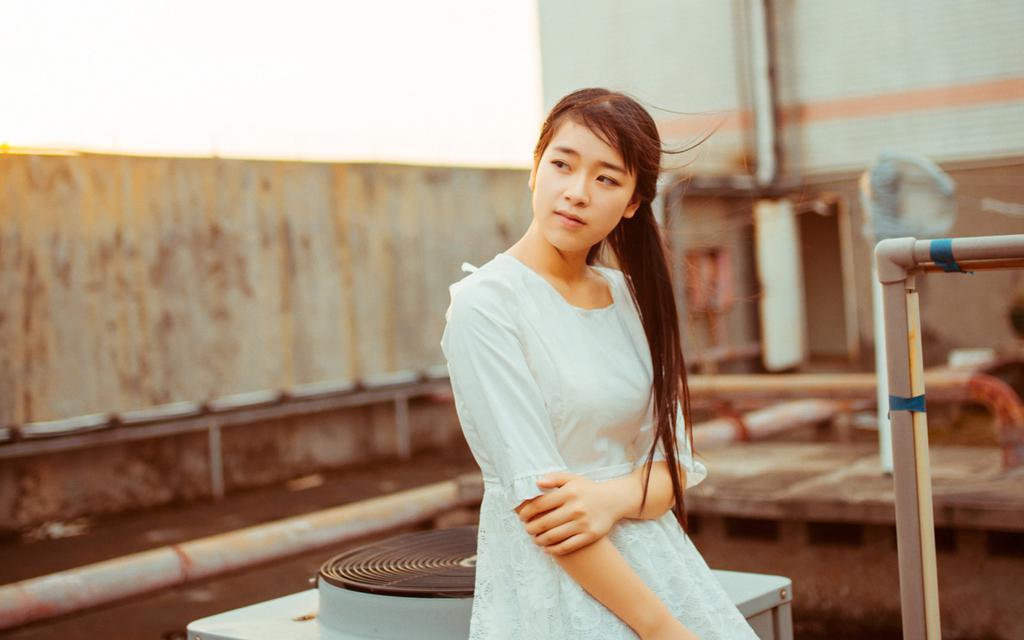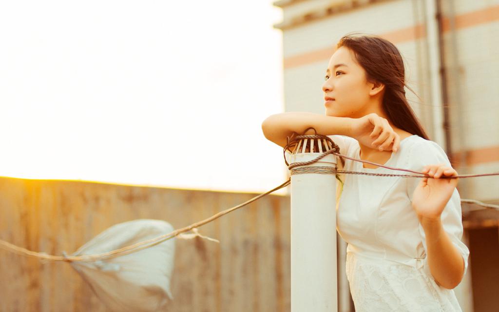 小清新美女天台唯美写真壁纸