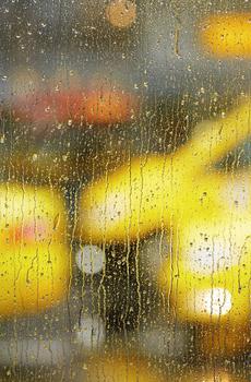 下雨天玻璃水汽水珠特写