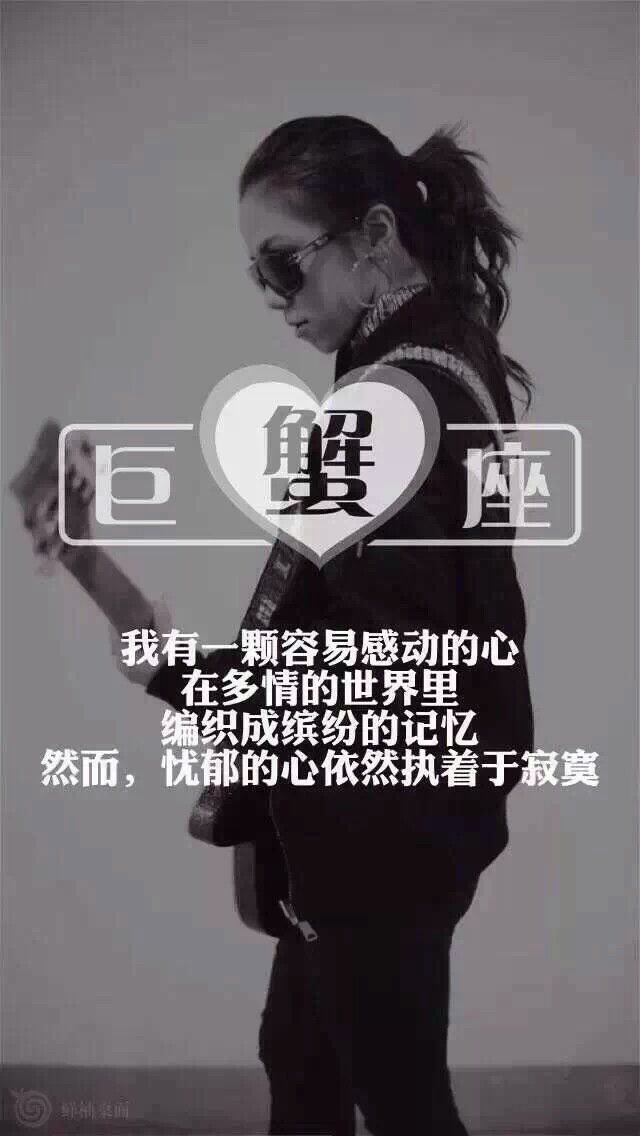 图集介绍:巨蟹座,出生日期为6月22日—7月22日。巨蟹座的人可以说是在月光照耀下诞生的。带点伤感滋味富有内涵和情节的音乐会使他们的想象力翻涌不停,他们喜欢用画笔和纸绘画出自己那悲观的情感。