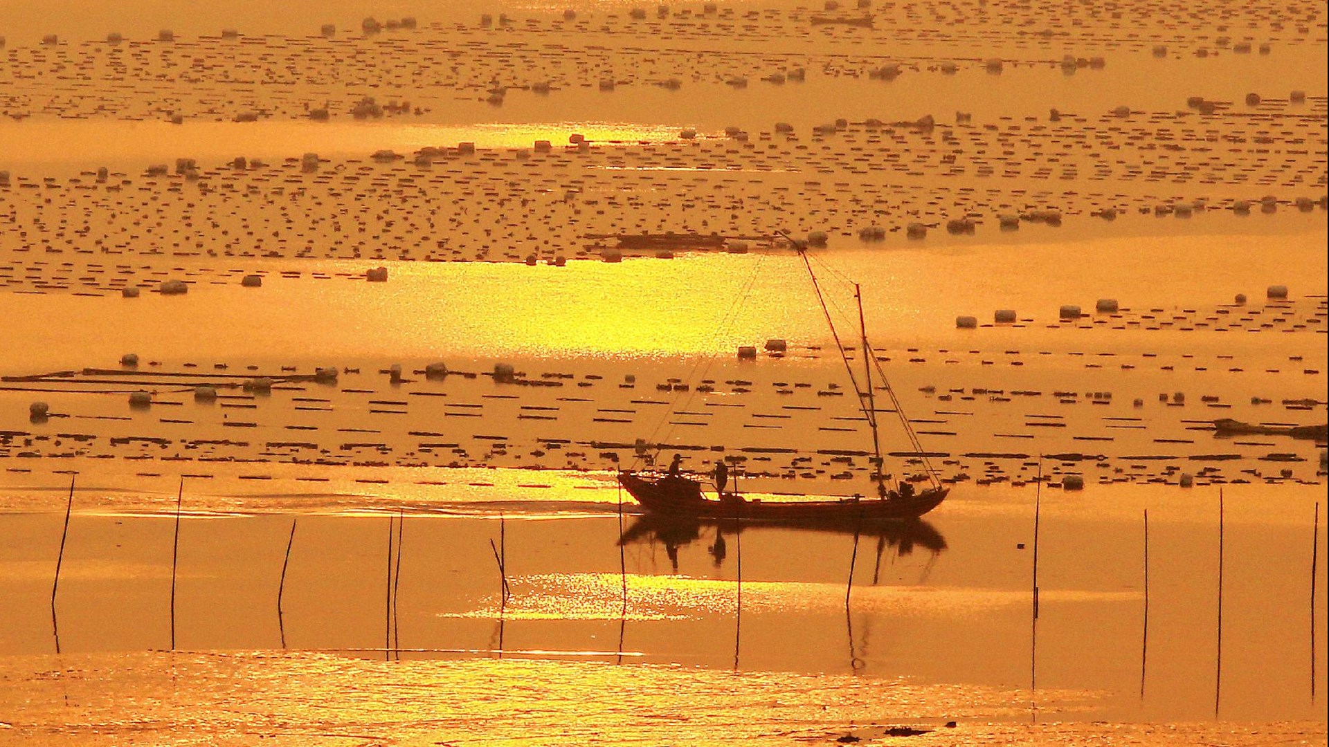 图集介绍:霞浦日出自然风景壁纸图片,霞浦坐落在海峡西岸东北翼,一抹橙黄紫红的霞光在前方天海间慢慢发亮洒向广阔的滩涂上,瞬间,天地之间流光溢彩,像是画家手中的彩笔在舞动飞滚,喷射出生命的激情,画面充满了奔放和动感。