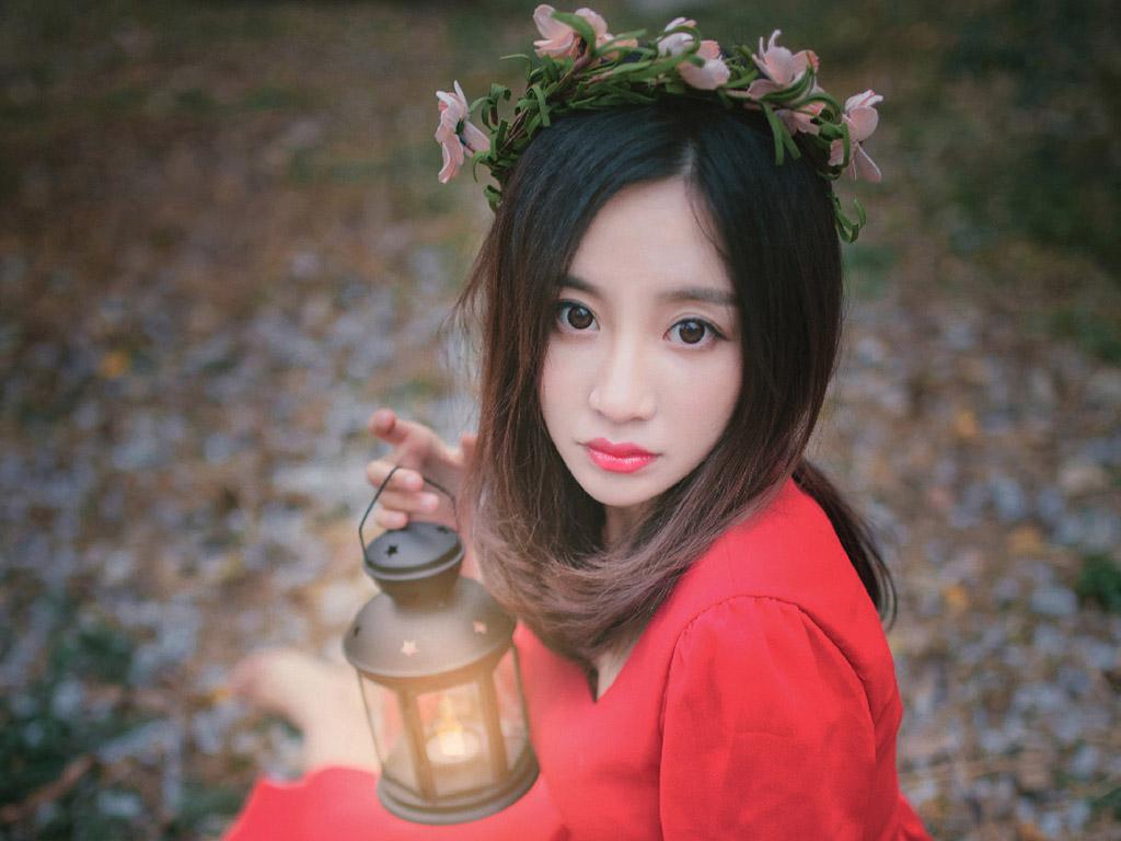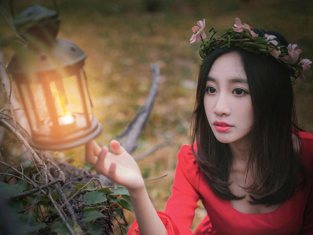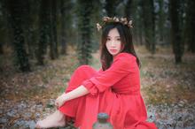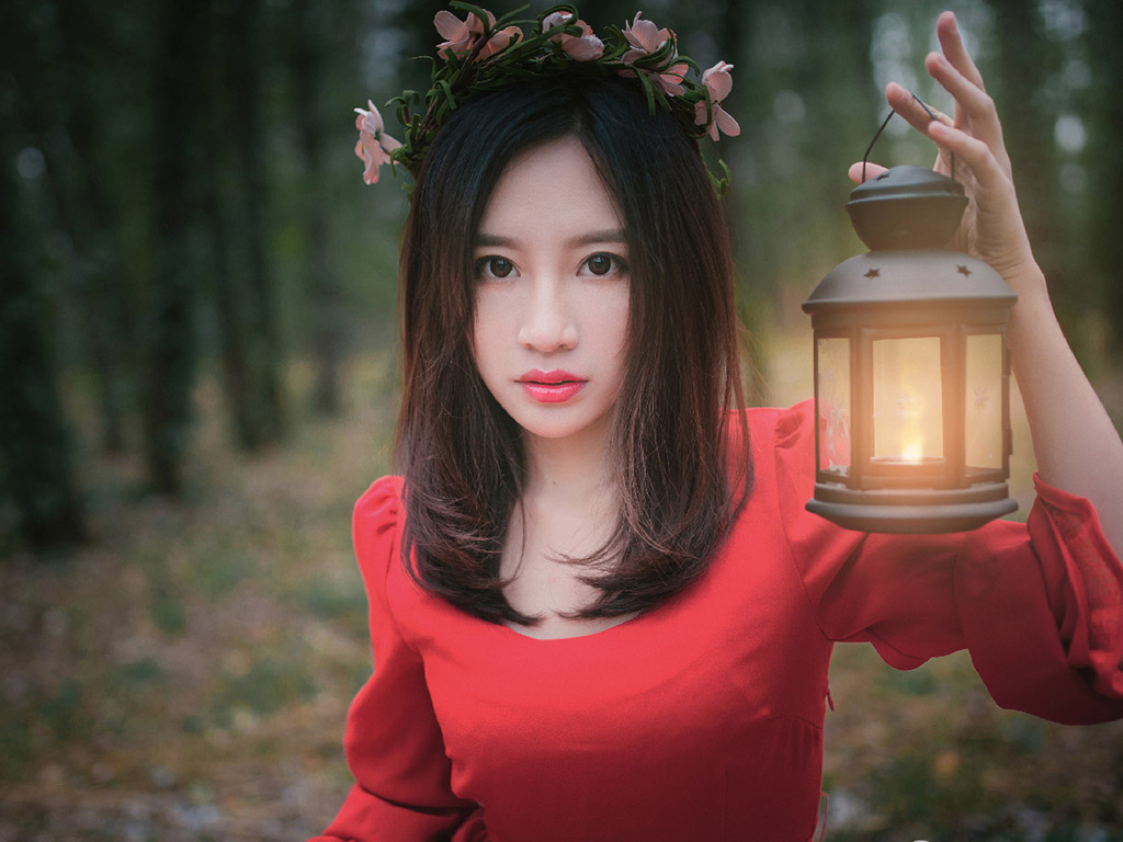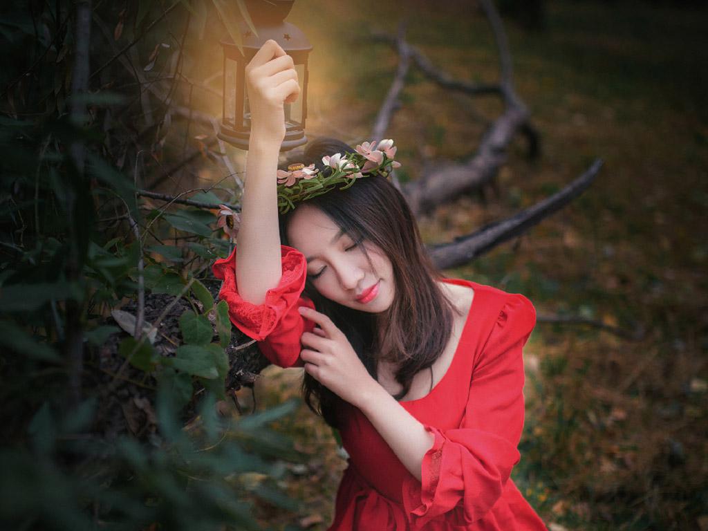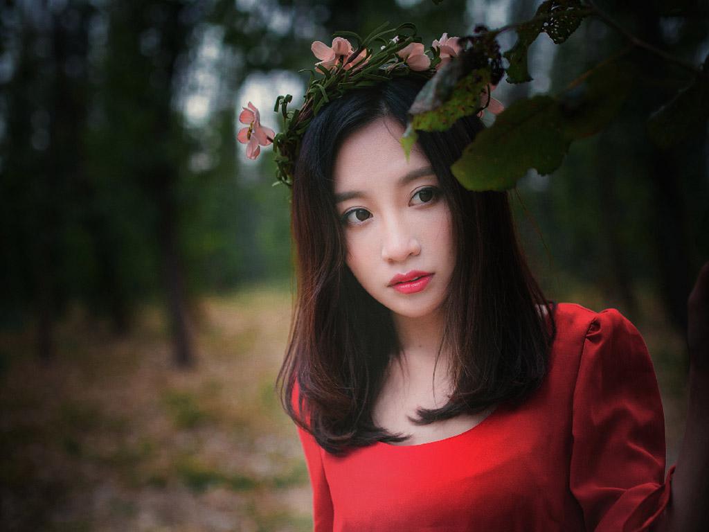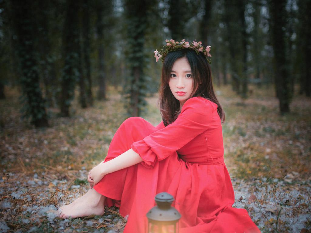图集介绍:红裙气质美女户外唯美写真iPad壁纸,穿着红色裙子非常的甜美,在森林里感觉就是住在自然森林里的绝世美女,非常的小清新唯美。