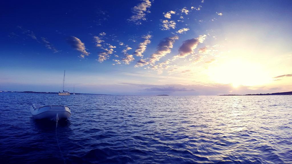 一叶孤舟迷人唯美大海俯瞰摄影