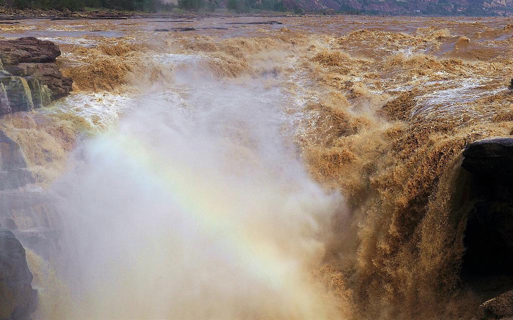 图集介绍:秦晋峡谷壶口瀑布壮观图电脑壁纸,壶口瀑布,号称“黄河奇观”,是黄河上唯一的黄色大瀑布,也是中国的第二大瀑布。以壶口瀑布为中心的风景区,集黄河峡谷、黄土高原、古塬村寨为一体,展现了黄河流域壮美的自然景观和丰富多彩的历史文化积淀。