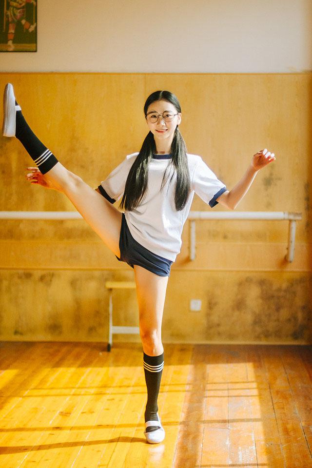 图集介绍:圆眼镜可爱少女日系写真手机壁纸,可爱的圆眼镜少女穿着运动装,扎着长长的辫子,在形体房里的她元气十足,做出各种舞蹈动作,她可是个清纯的萌妹子。