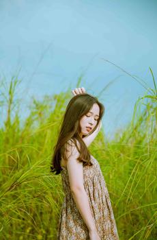 图集介绍:森系小美女户外写真手机壁纸,森系小清新美女,站在草丛里的她穿着吊带衣,很是唯美清新哟~~抬头望着蓝天的她更是格外的漂亮。