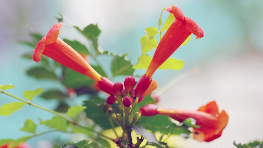 橘色唯美清新凌霄花