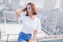 短发个性少女天台写真