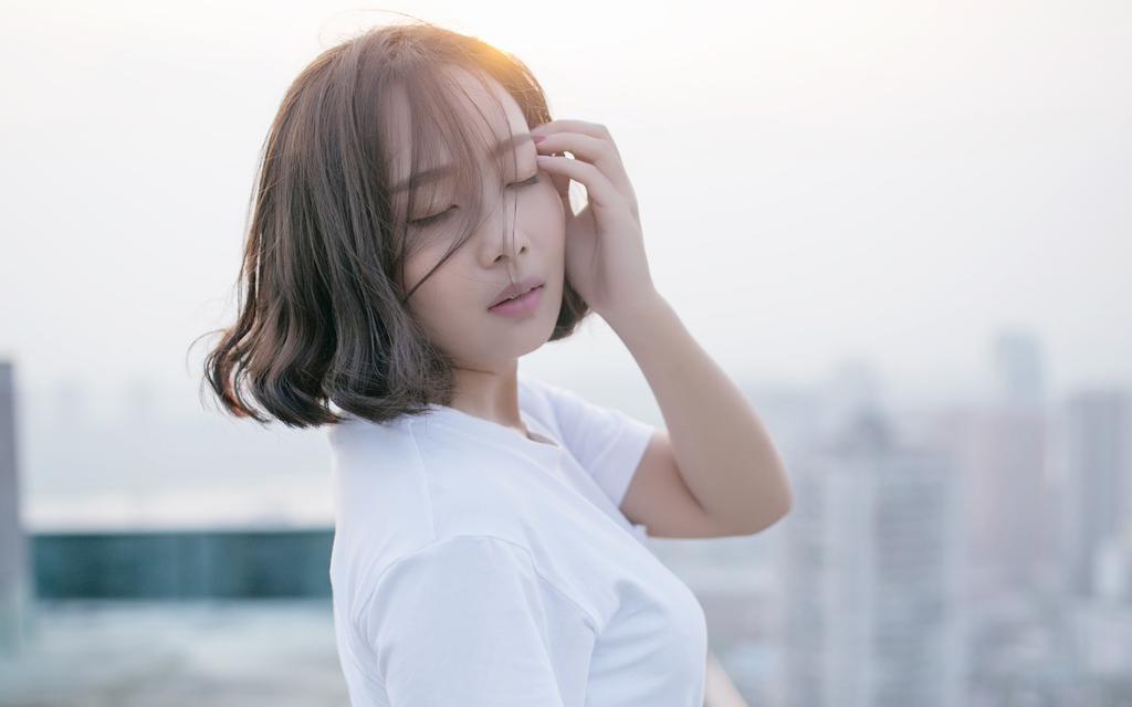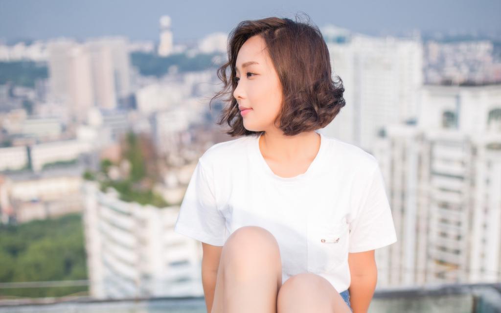 短发美女天空之境唯美摄影壁纸