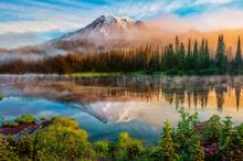 湖泊呈现的唯美倒影