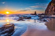 海岸边朝霞迷人的风景