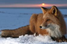 落日下雪狐