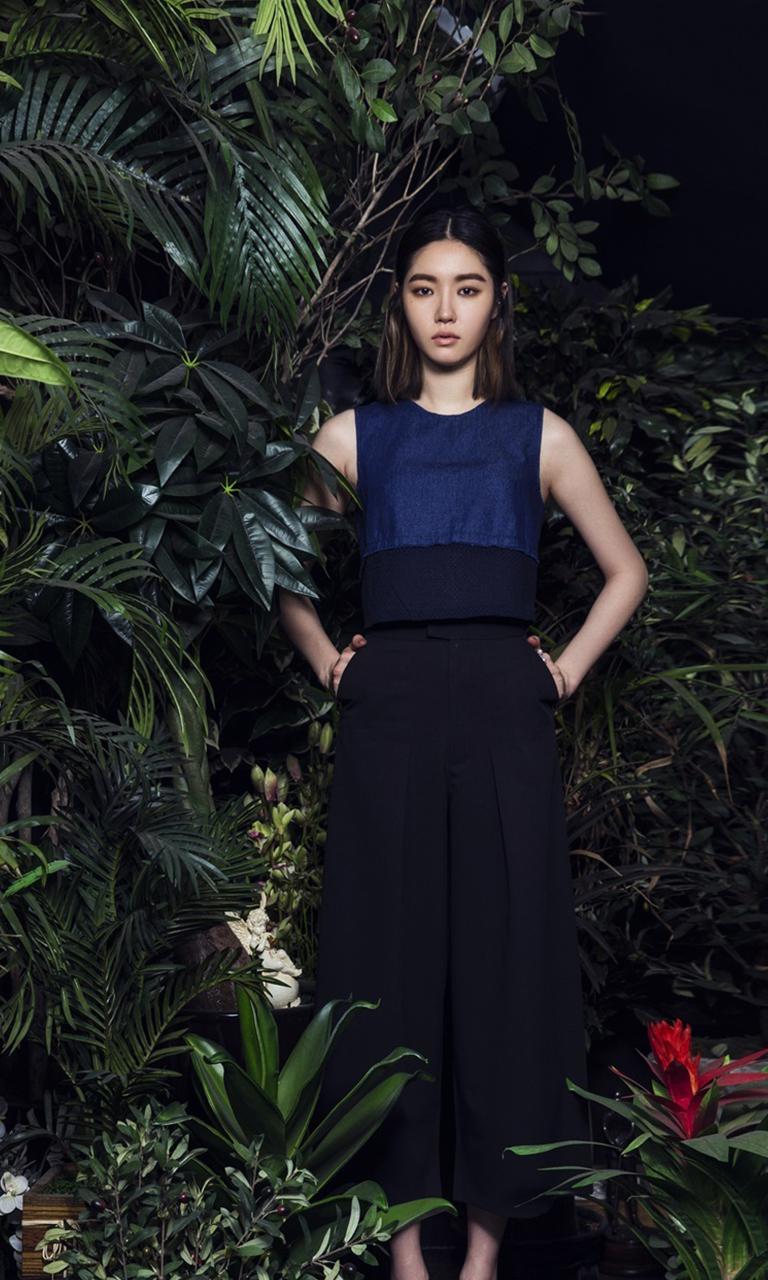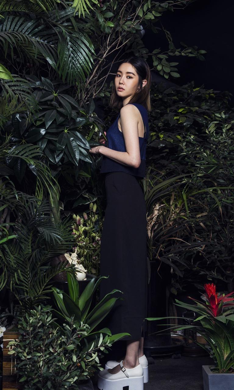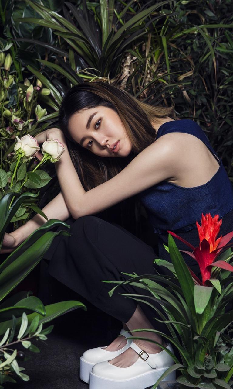 图集介绍:韩国美女金思纶气质写真手机壁纸,韩星金思纶静谧少女置身丛林,蕾丝花边裙凸显女性优雅魅力。