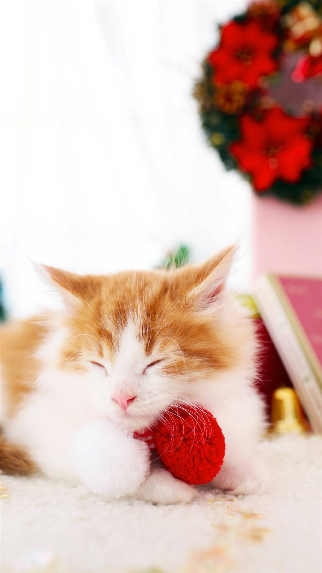 可爱圣诞白猫