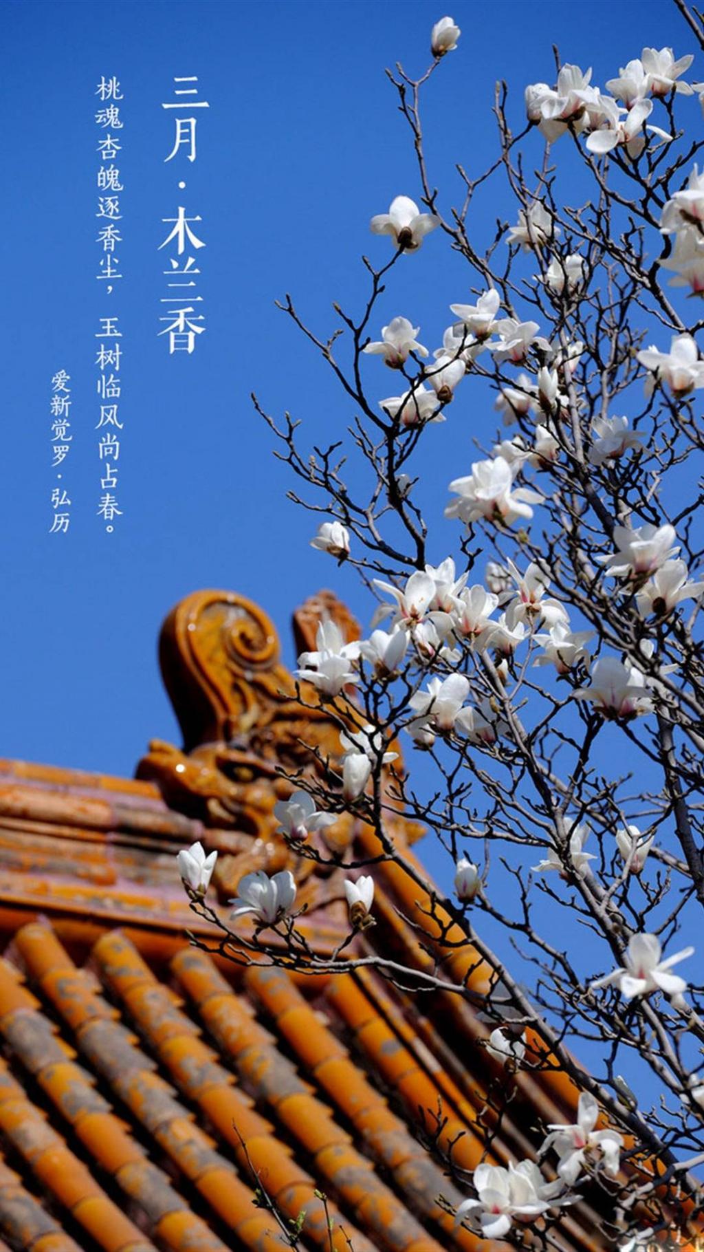 图集介绍:三月木兰香关于三月,木兰花,唯美风光,故宫,带字等精美壁纸,支持各种机型可以用二维码下载,让您能够更加方便的下载到更加精美的高质量手机壁纸。