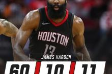 哈登60+三双历史第一人