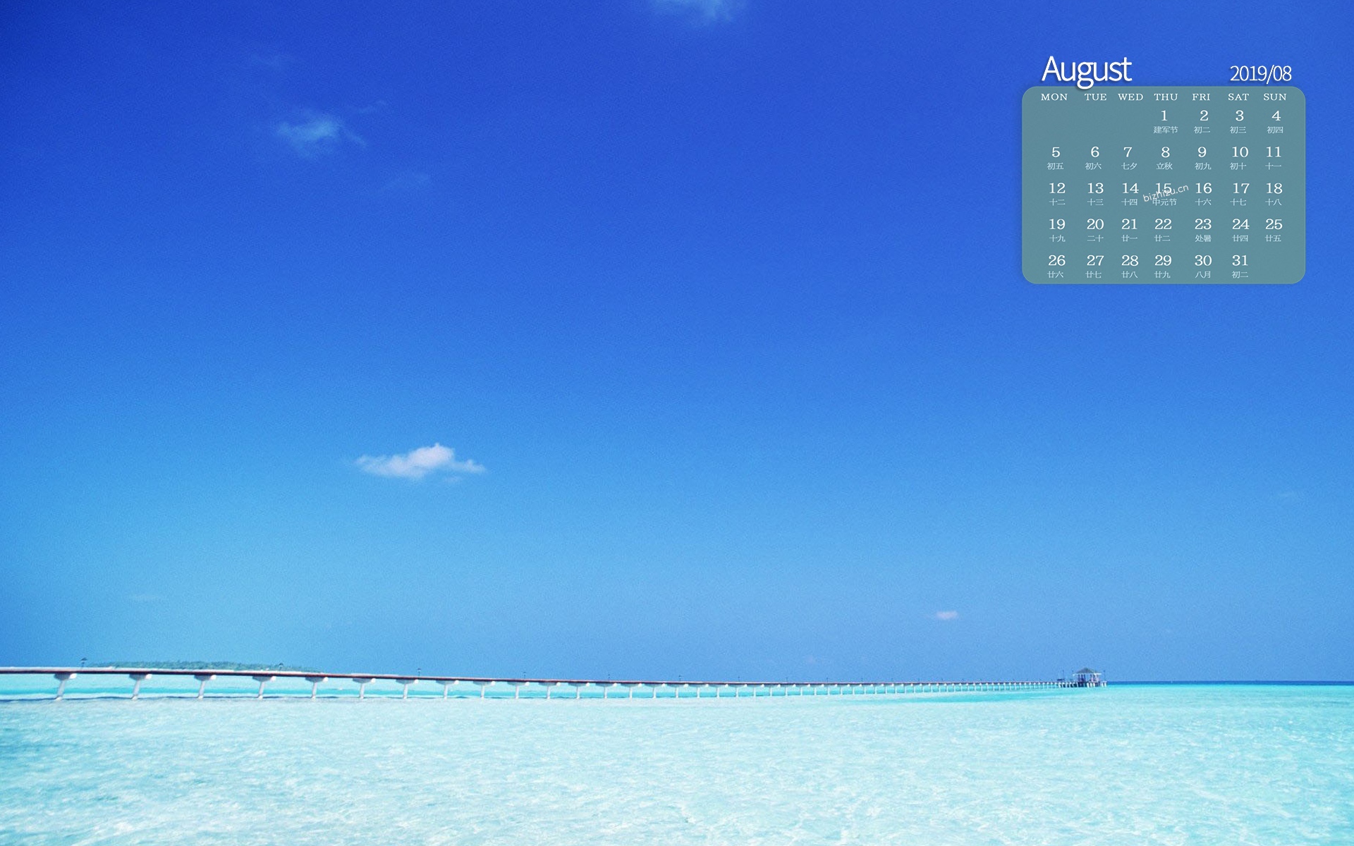 2019年8月蔚蓝的海洋写真日历