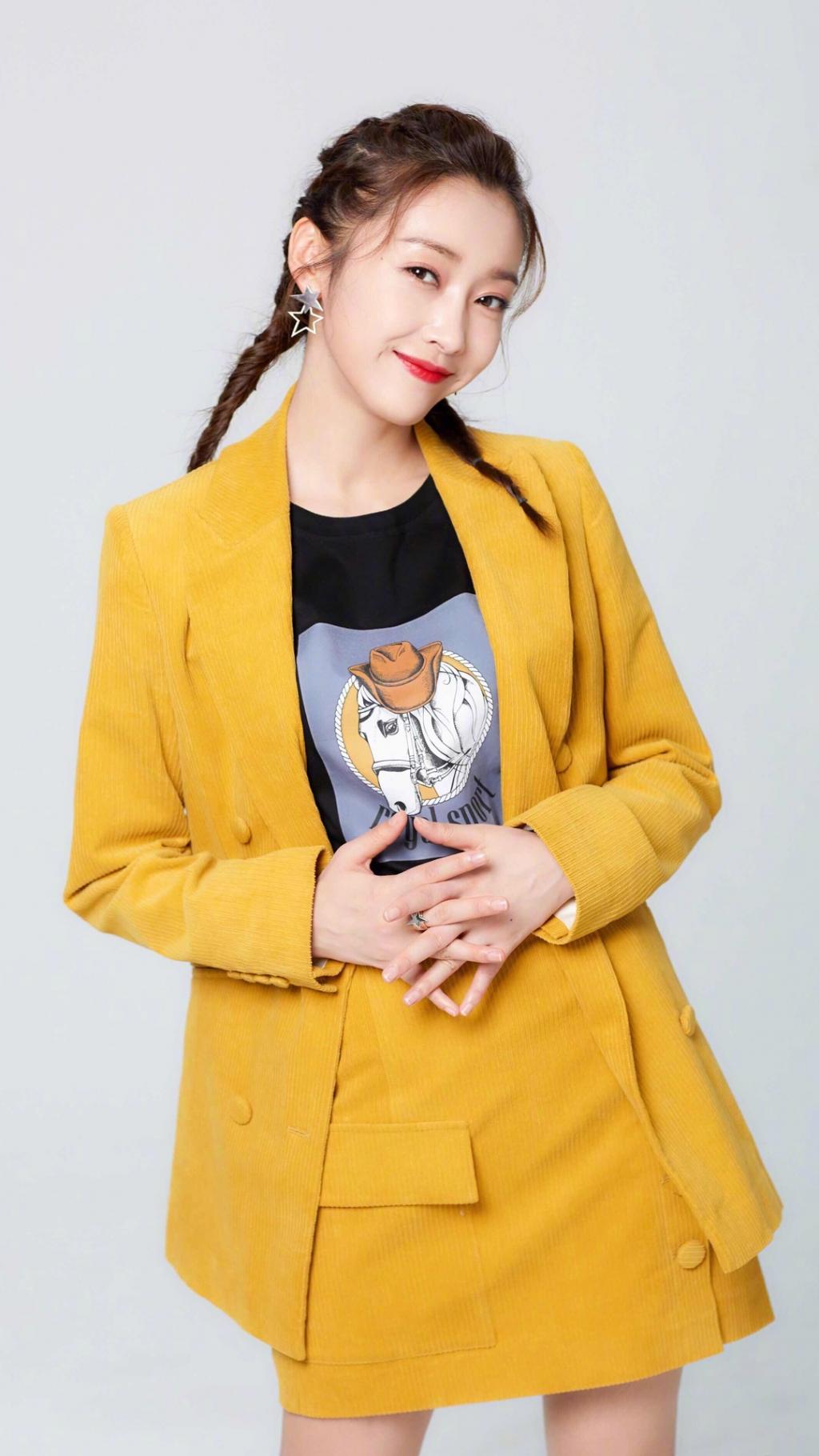 图集介绍:宣璐一身早秋鹅黄西装搭配星星耳饰,脚踩黑色短靴出镜,造型利落不失甜美。
