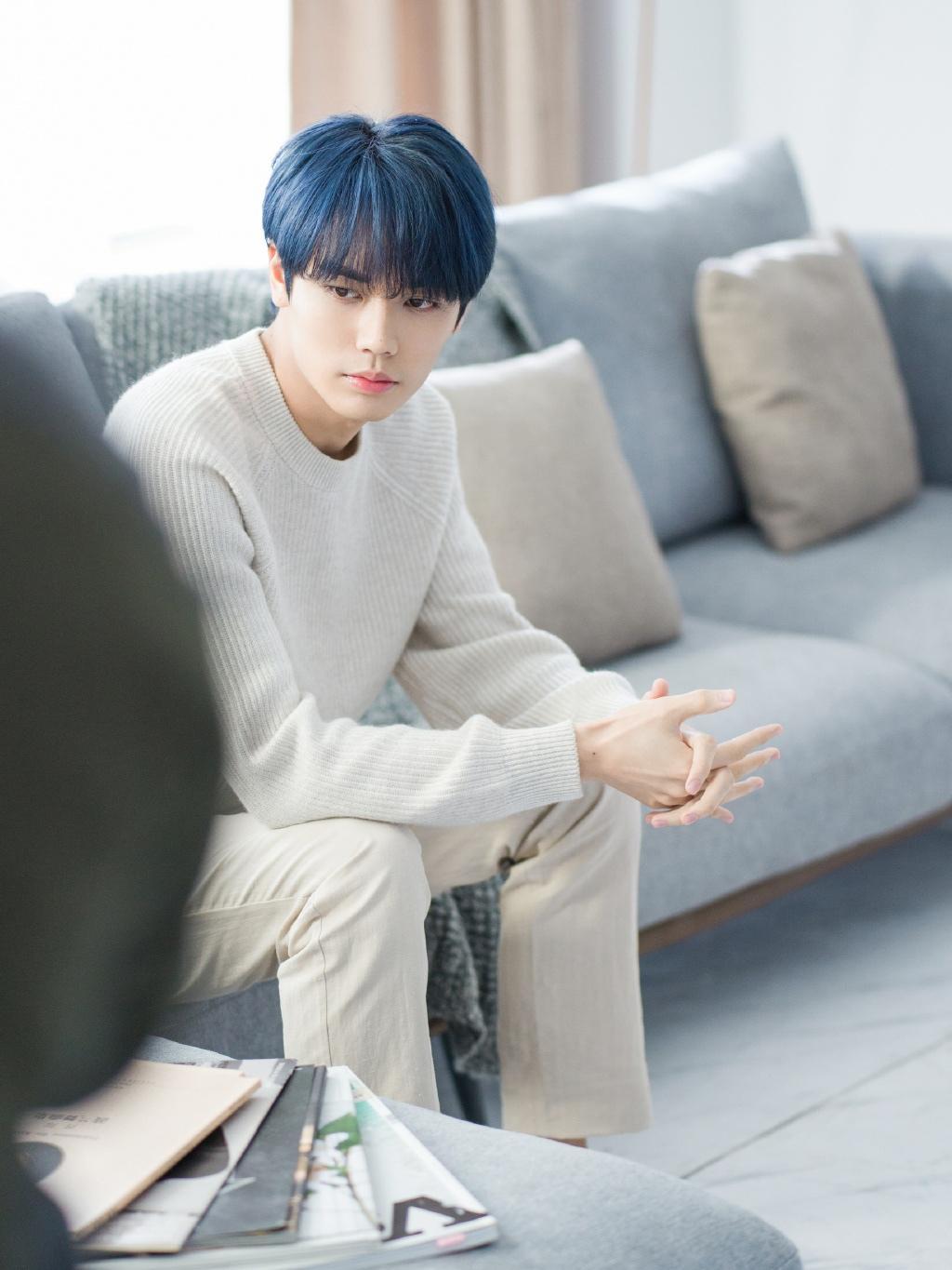 林彦俊时尚休闲帅气蓝发写真