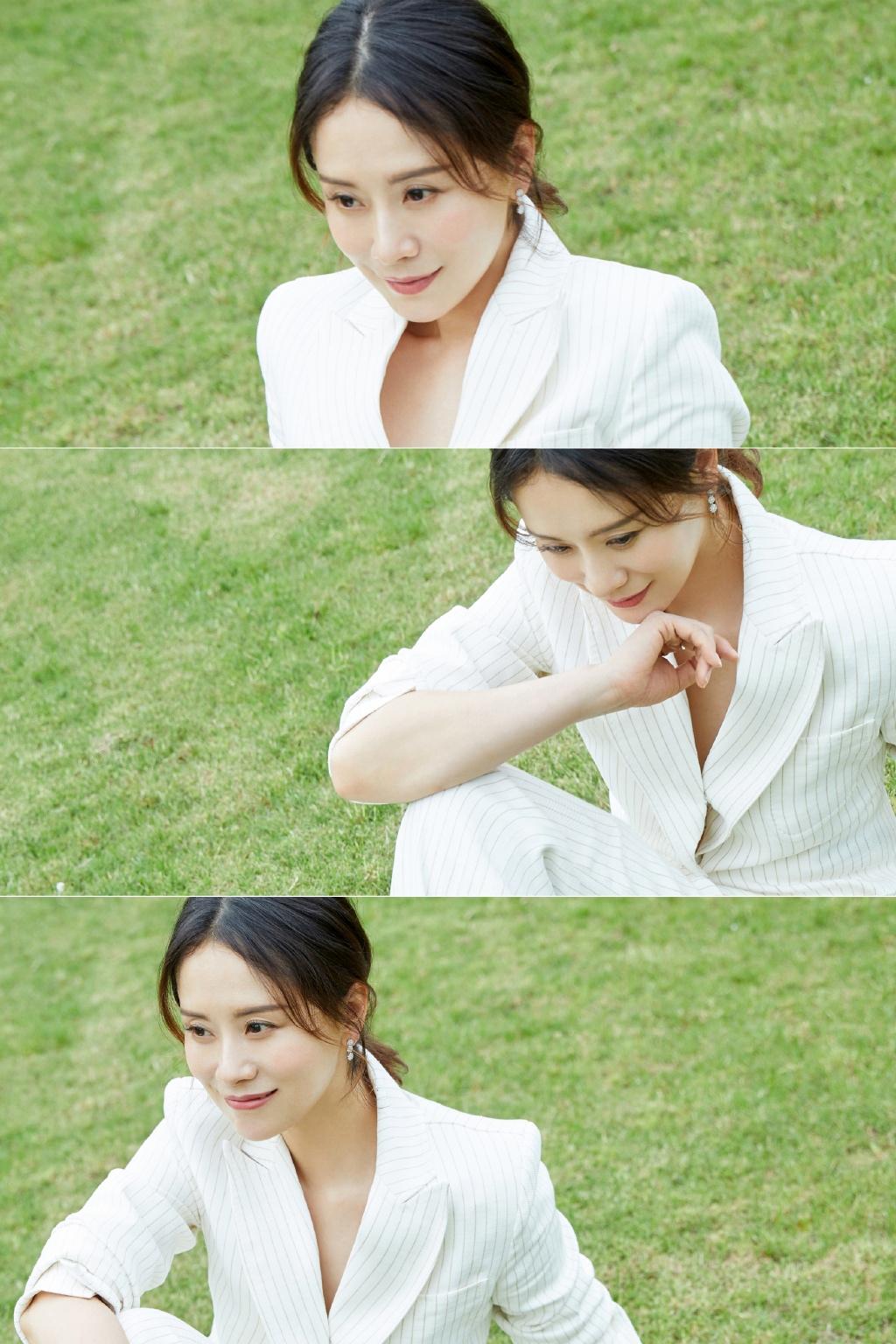 图集介绍:海清白色西装田园性感魅力写真:身着职场装扮与大自然亲密接触,自然清新不违和,反而凸显出优雅知性的气质。
