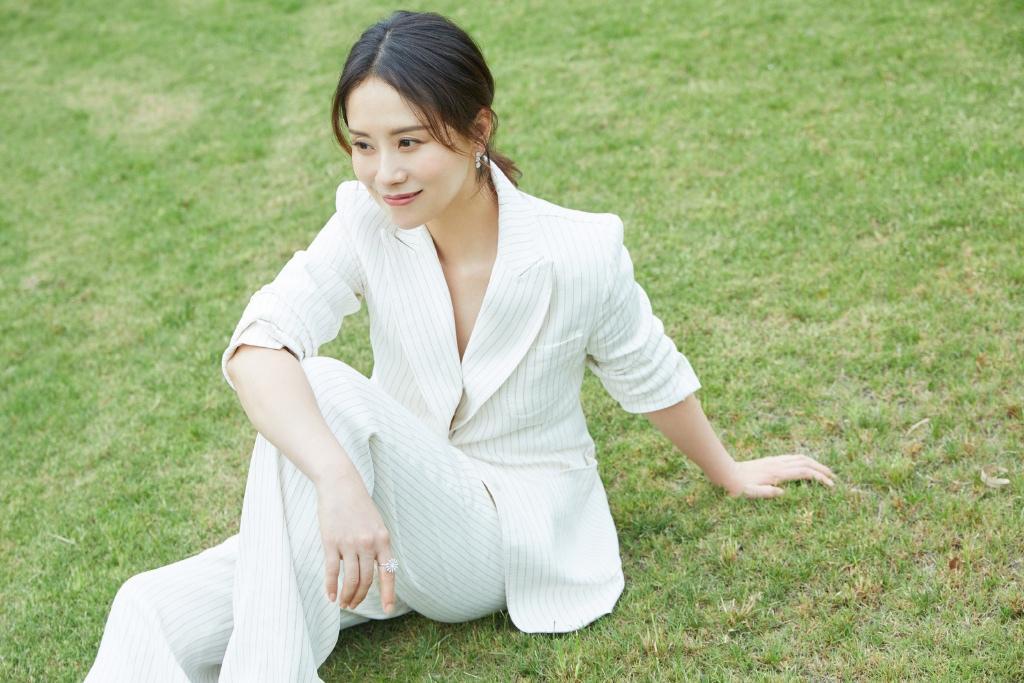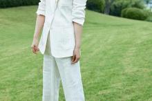 海清白色西装田园性感魅力写真