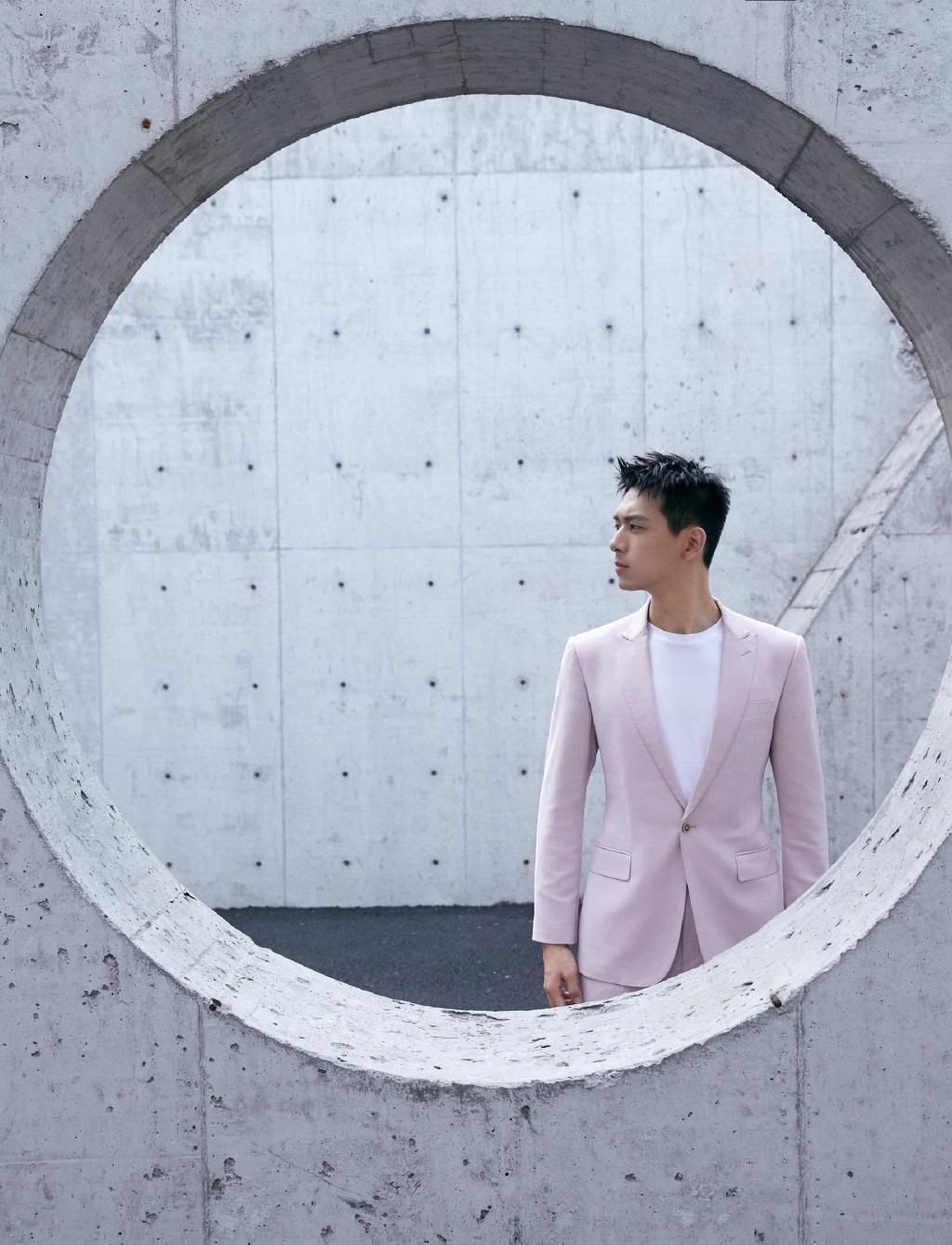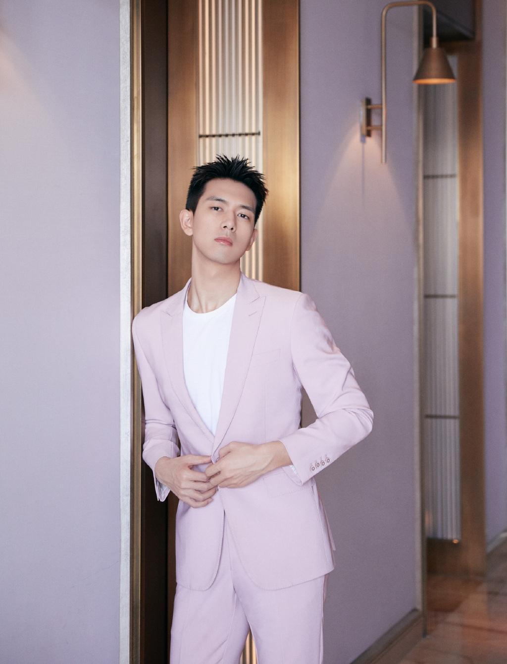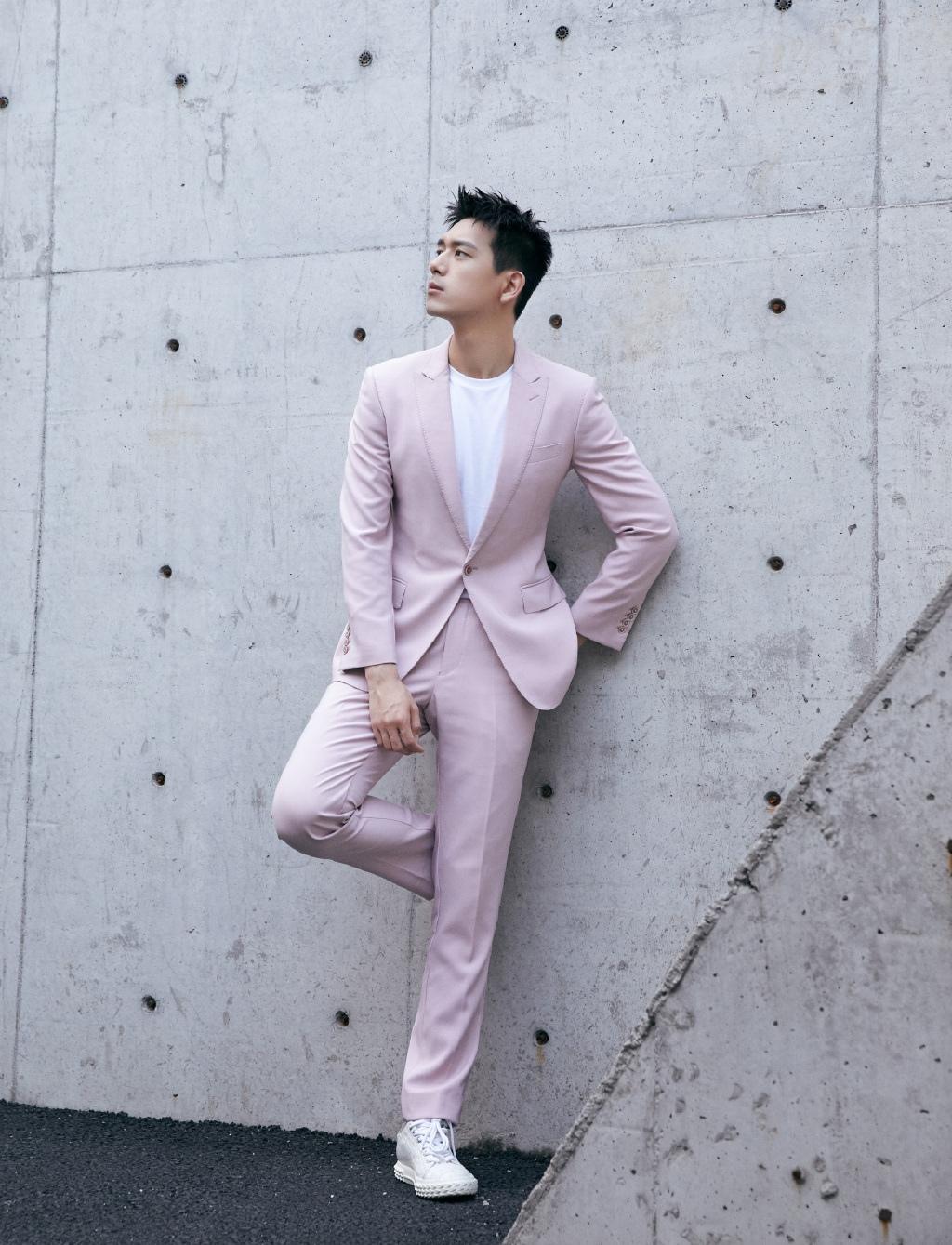 图集介绍:李现休闲西装帅气魅力写真:虽穿着粉色西装,依然不减李现男人魅力,反而更显青春朝气。