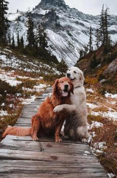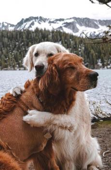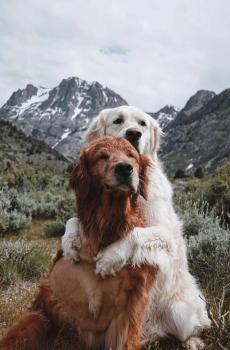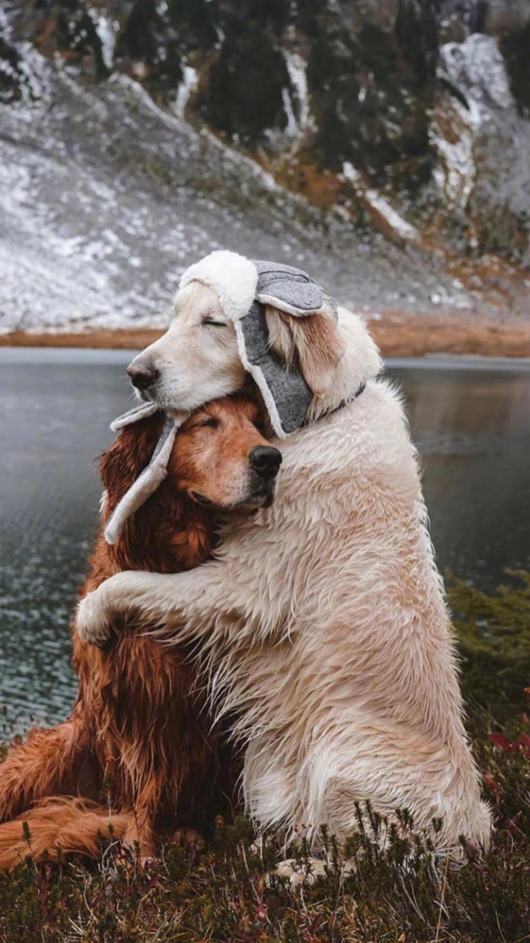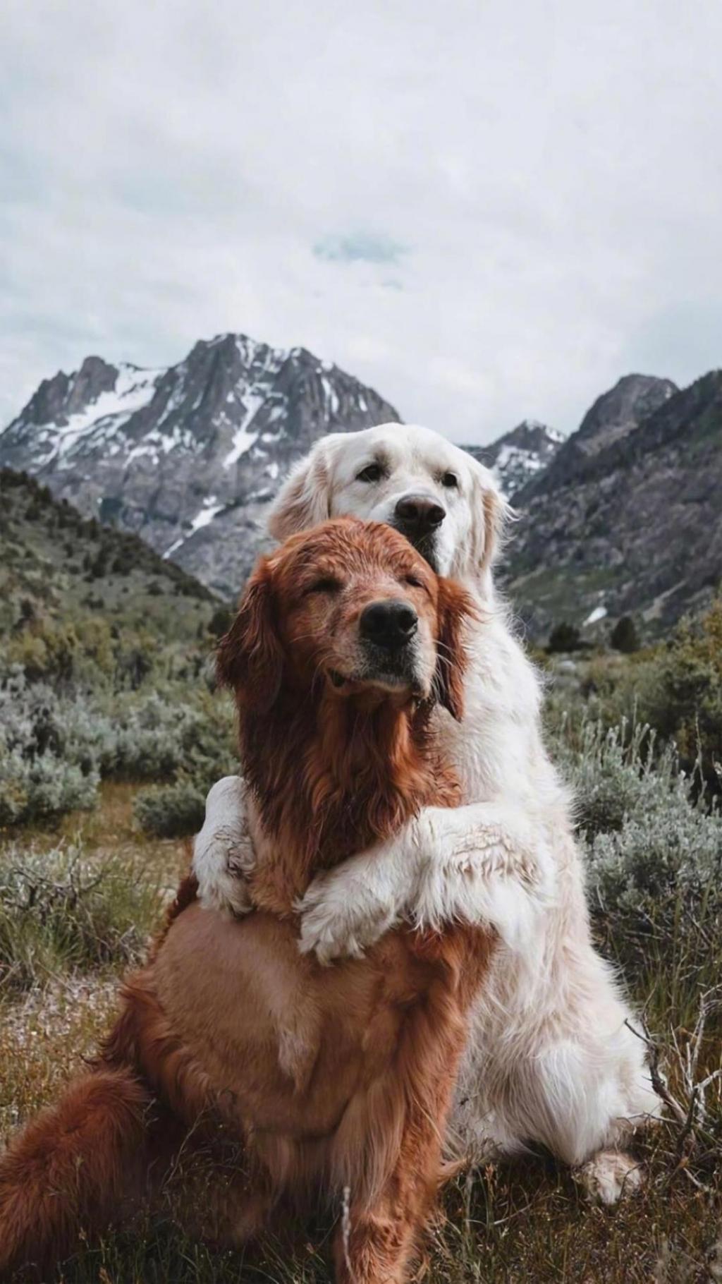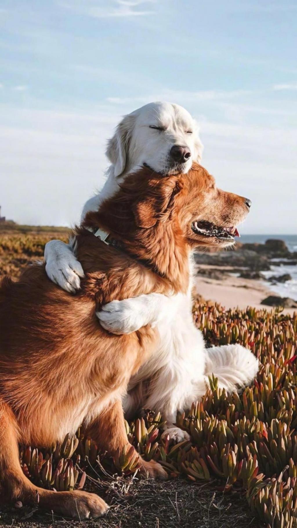 图集介绍:关于可爱狗狗之间的真挚友谊手机壁纸:分享一组金毛犬高清图片,两只金毛分别叫Watson和Kiko,从小一起长大,看着它们相亲相爱拥抱在一起的样子,让人不仅相信这世间存在着不是兄弟胜似兄弟的友谊。