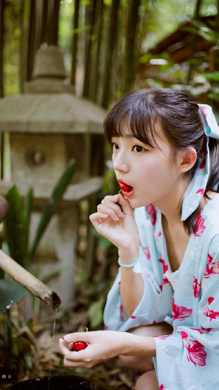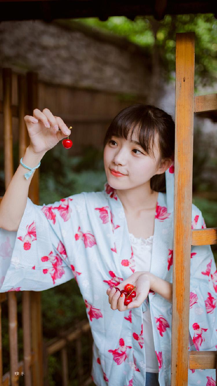图集介绍:日系和服美女唯美写真iphone6壁纸,可爱的小清新美女,穿着美丽的和服,邻家女孩的美感,拿着樱桃或是拿着金鱼的她可爱至极。