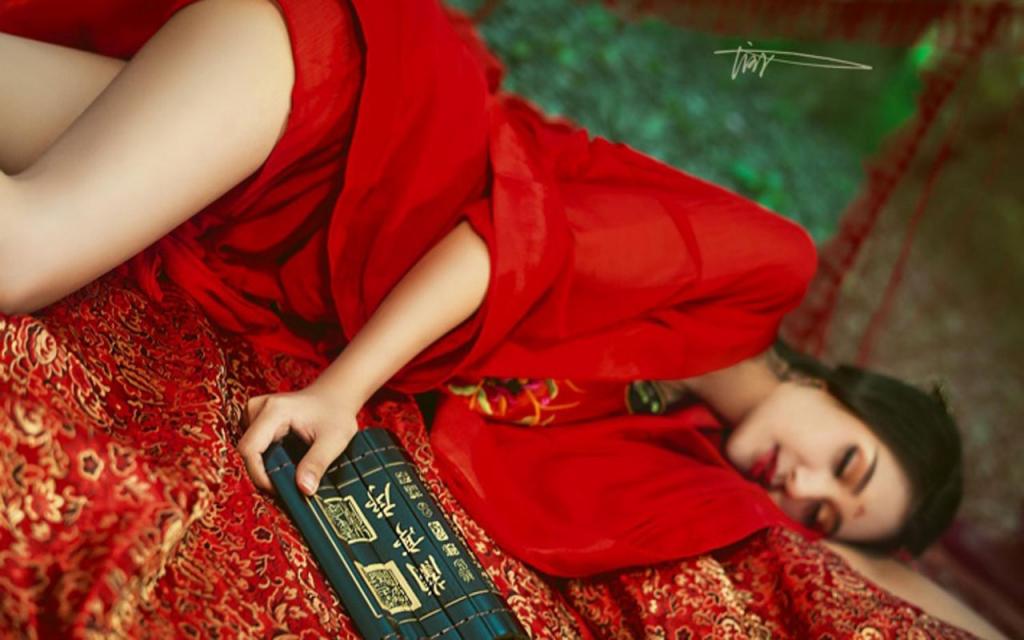 图集介绍:妩媚性感美女古装写真图片。身穿大红古装妩媚性感,看书,饮酒,性感至极。
