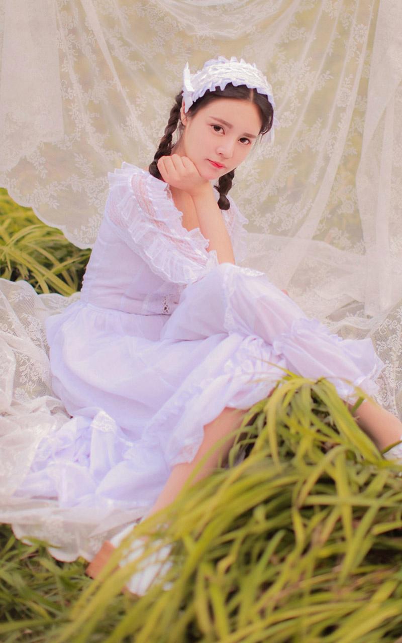 图集介绍:白色蕾丝裙甜美女孩户外写真,写真中,甜美可爱女孩穿着白色蕾丝裙,纵身草丛中,画面唯美清新。