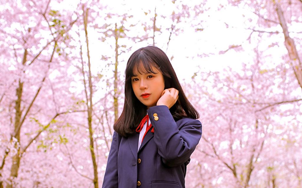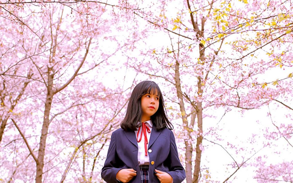日系JK制服少女樱花下唯美图片